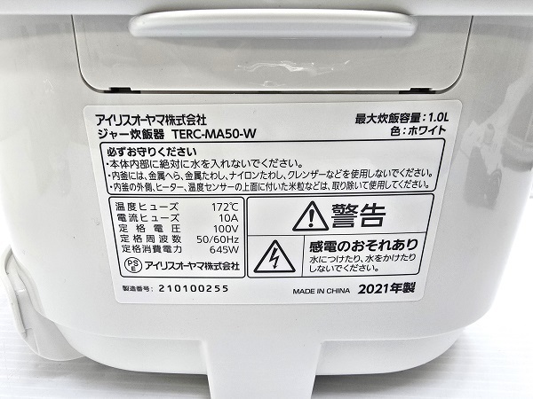 【中古品】 アイリスオーヤマ IRIS OHYAMA マイコン式 炊飯器 5.5合炊き TERC-MA50-W 2021年製 ホワイト ○YR-18471○ の出品です。