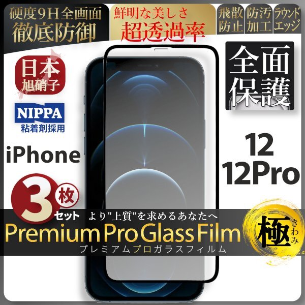 iPhone 12 / iPhone 12 Pro 全面保護 強化ガラスフィルム 超得3セット 旭硝子 自動吸着 99%透過 保護フィルム 液晶保護フィルム