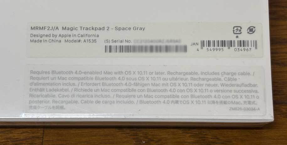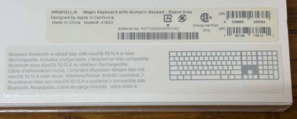 型番:キーボード:MRMH2LL/A A1843 US配列  トラックパッド:MRMF2J/A A1535