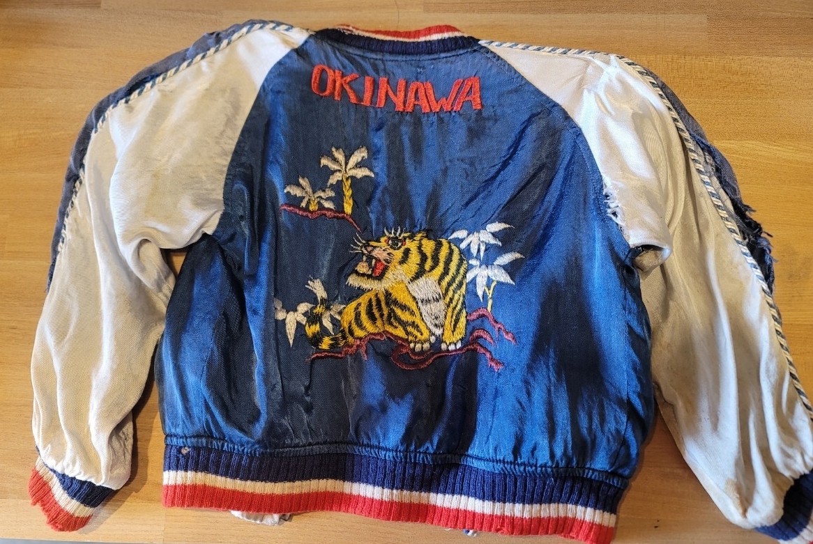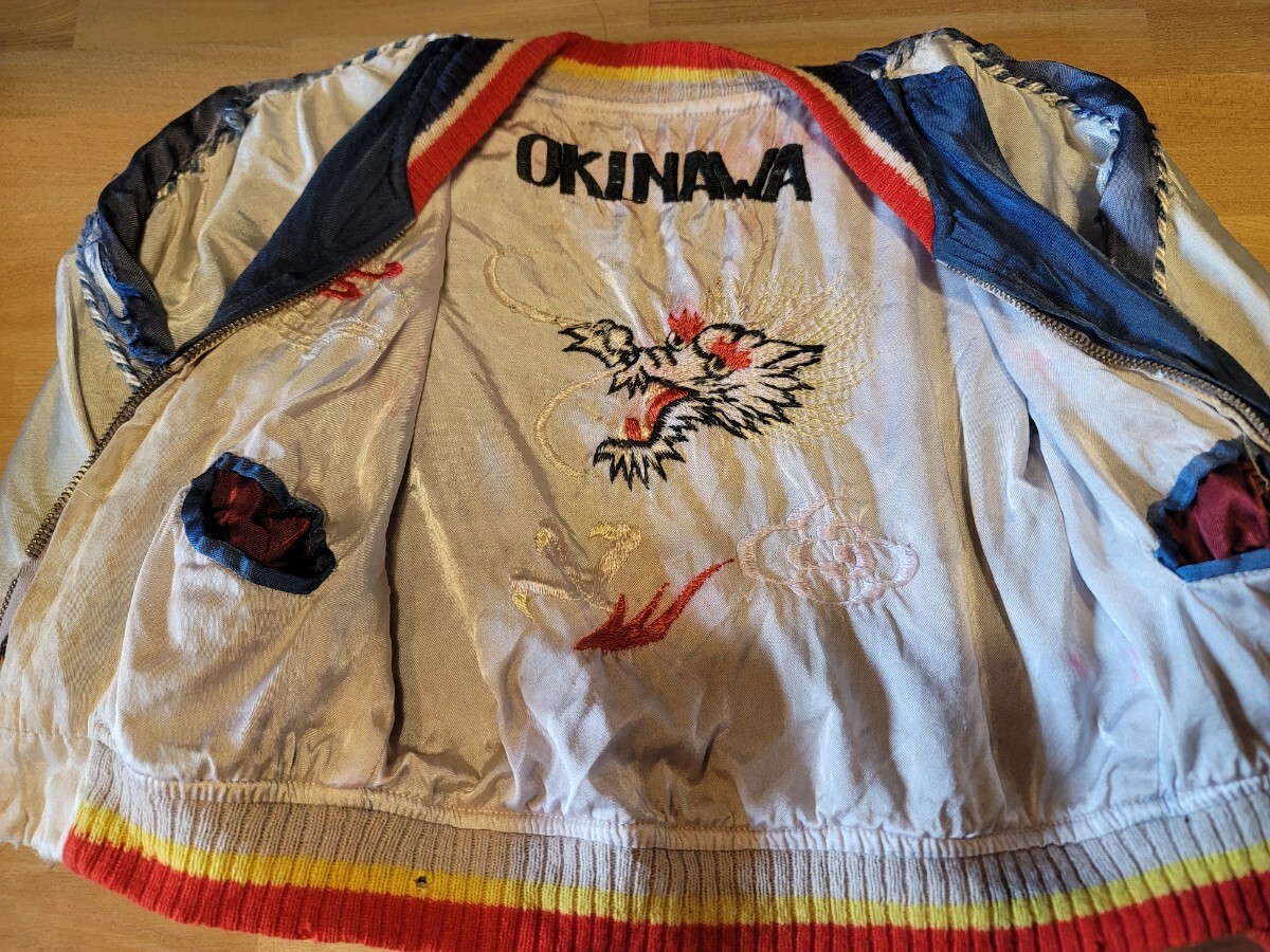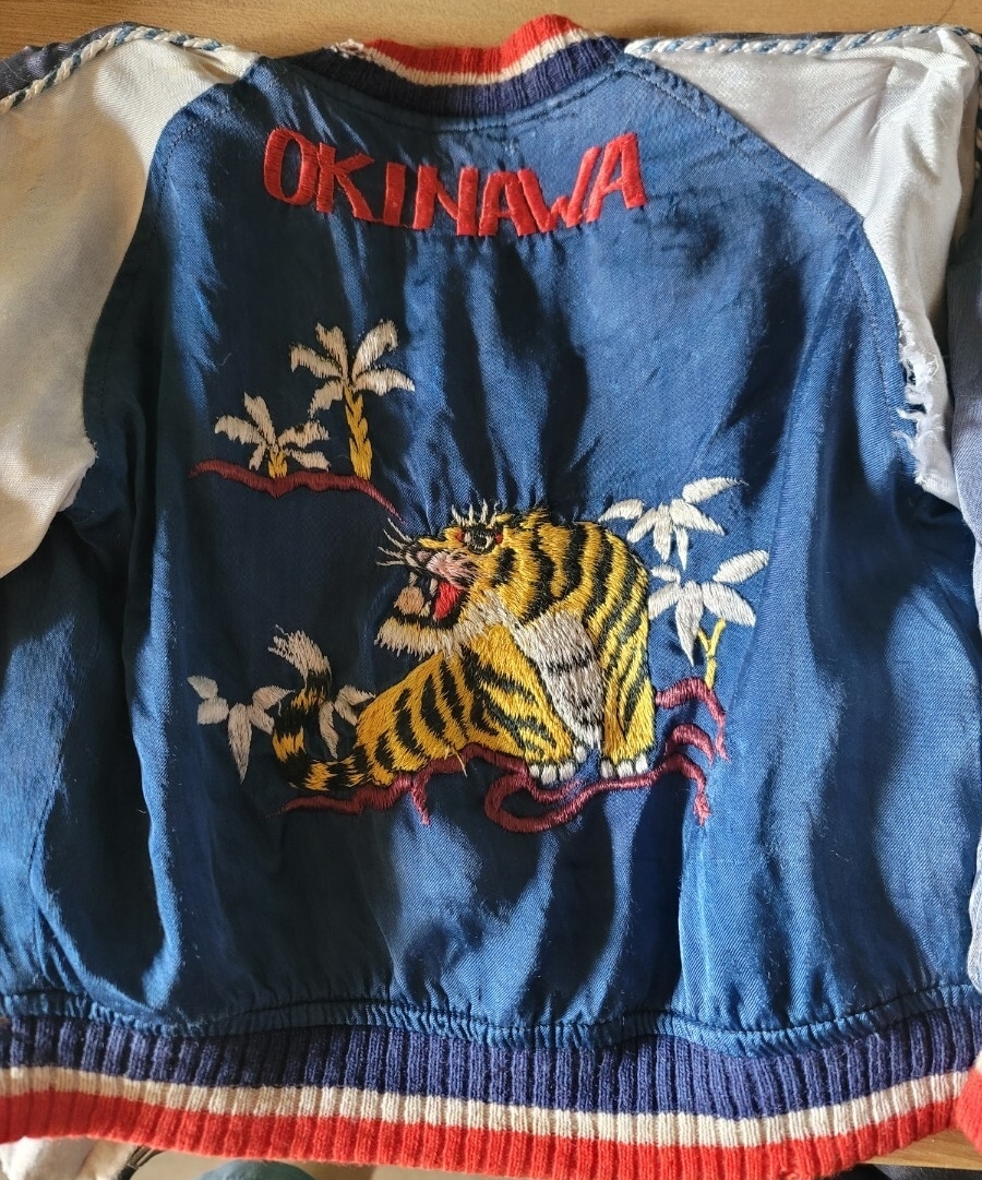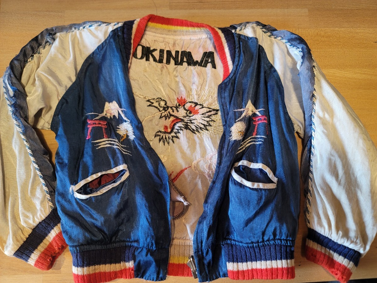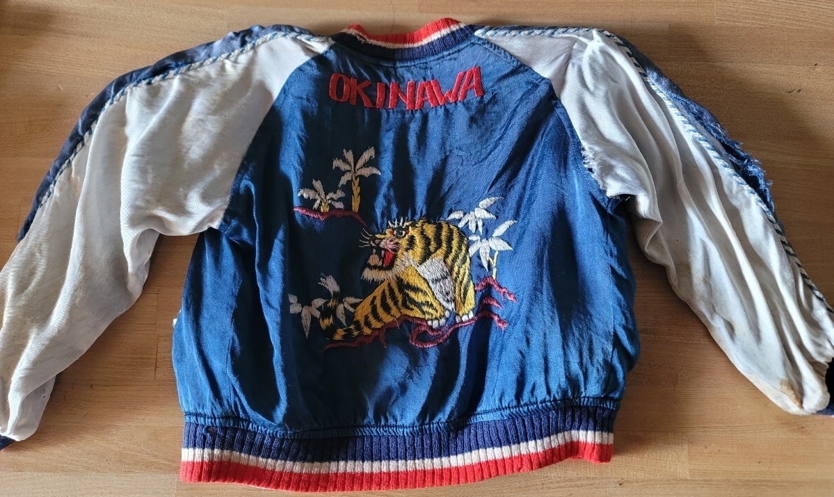 50年代~60年代のものと思われる、沖縄デザインのスカジャンキッズサイズです。家族から譲り受けて、自宅保管していましたが、お譲りします。