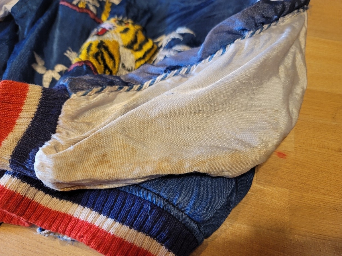 はっきりした製造年代は、わかりかねますが、大きい刺繍と、数少ないキッズサイズですので、貴重なものと思います。