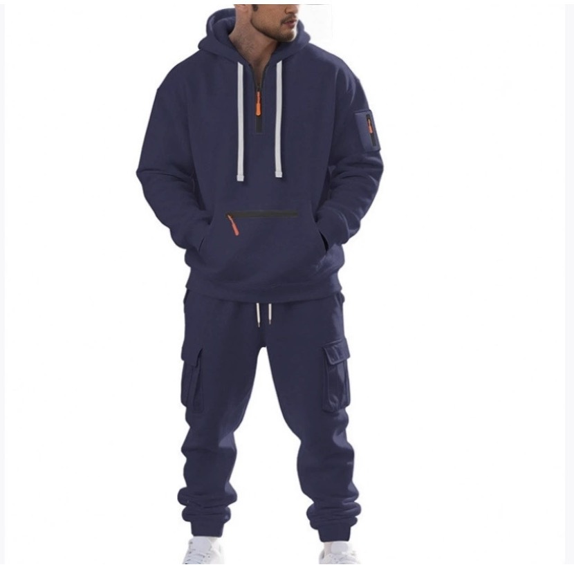 メンズ 上下セット メンズ ハーフジップ トレーナーセットアップ  防寒 防風秋冬 マルチポケット スウェットシャツ & パンツ セットき