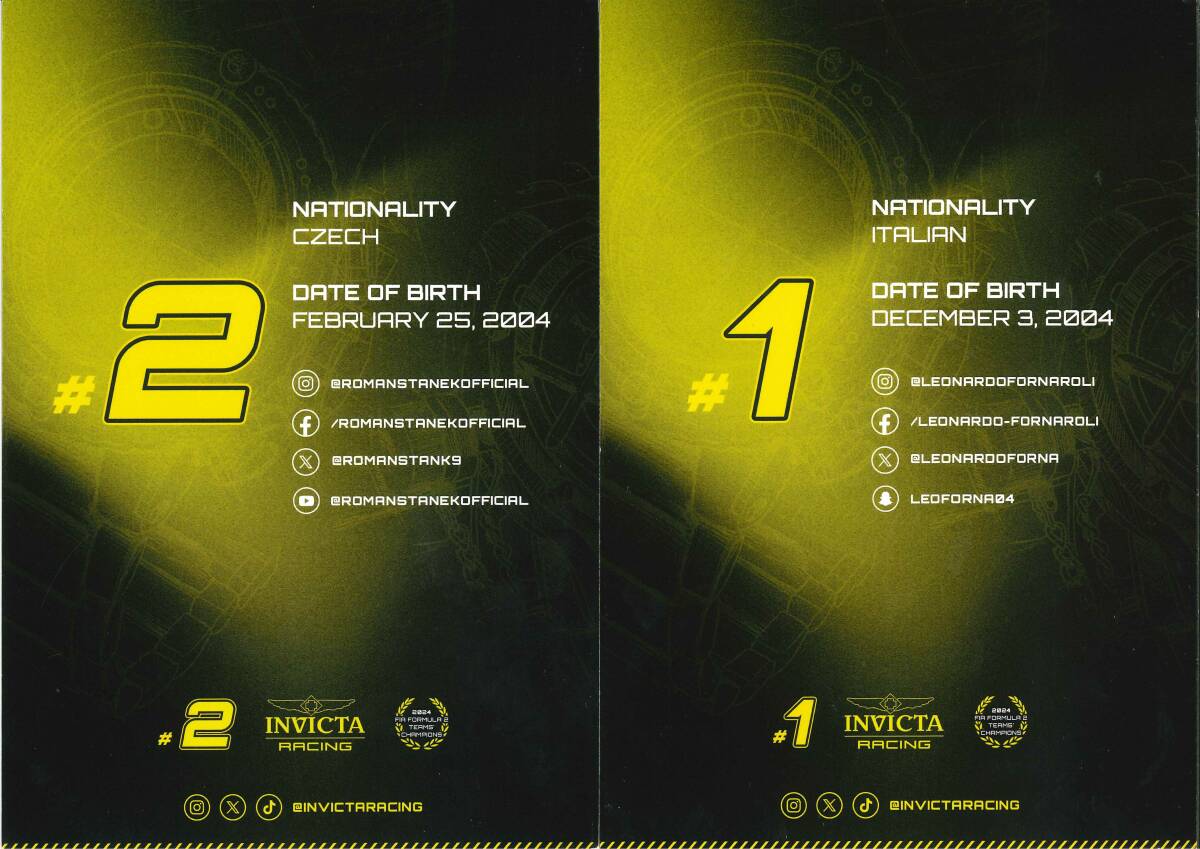 2025インビクタRacing FIA-F2 Lフォルナローリ・Rスタネック 直筆サインカード2枚セット