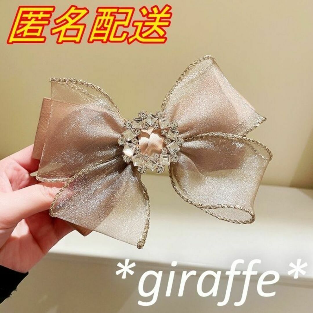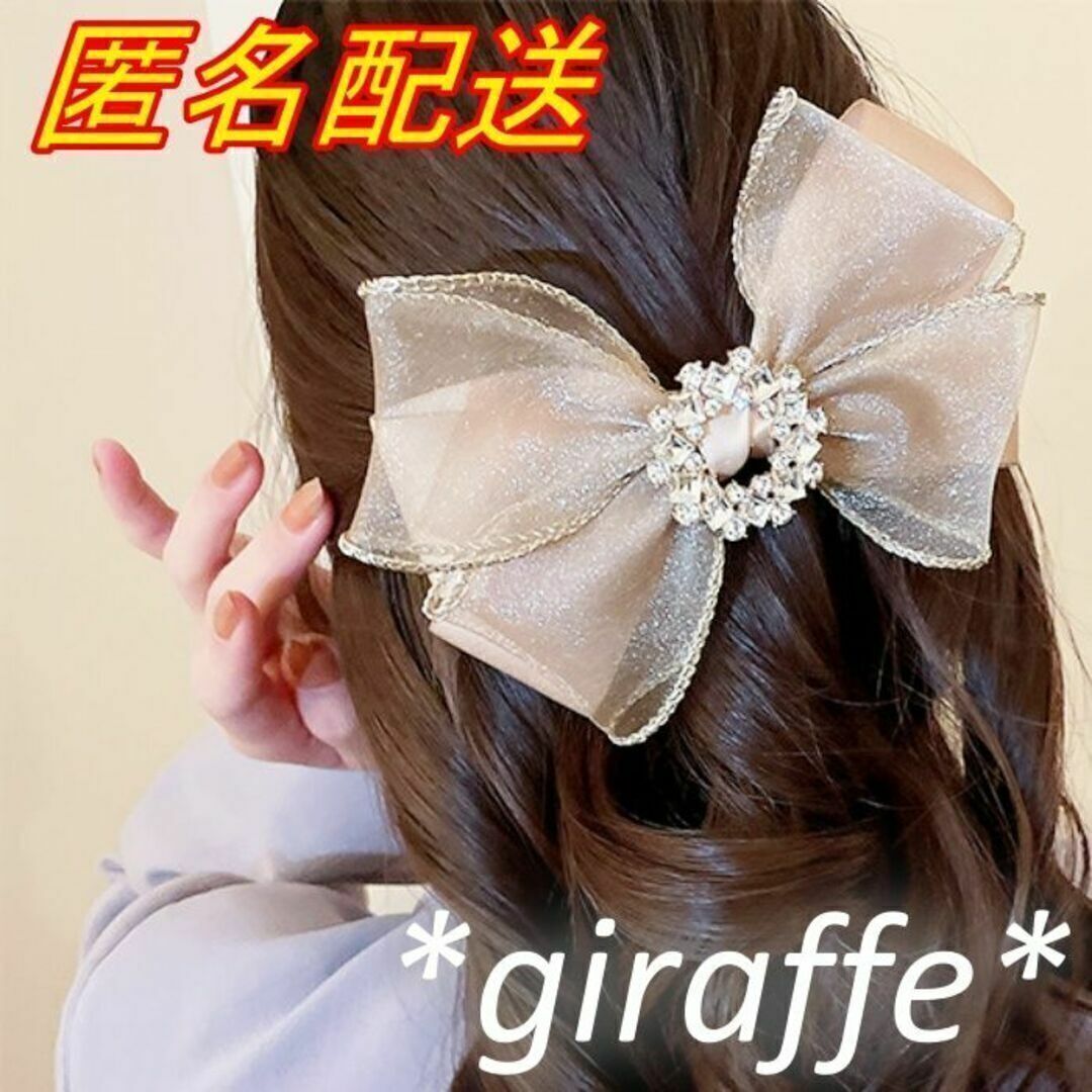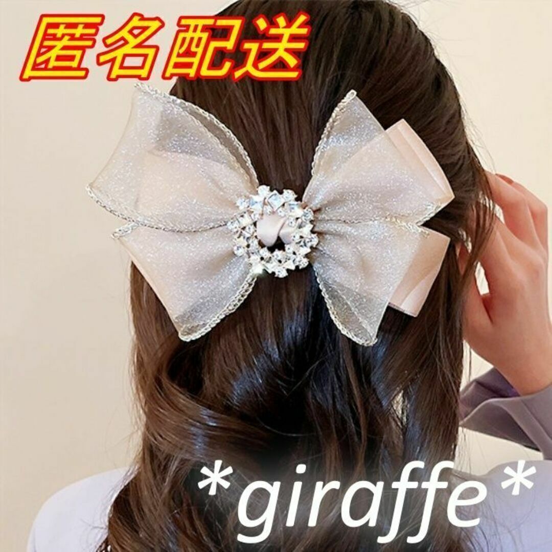 E287 匿名配送 バレッタ サークル ラインストーン リボン ベージュ 髪留め ヘアクリップ ヘアアクセサリー