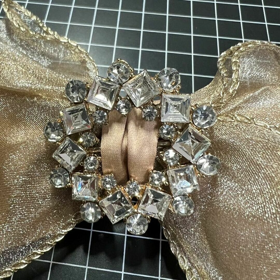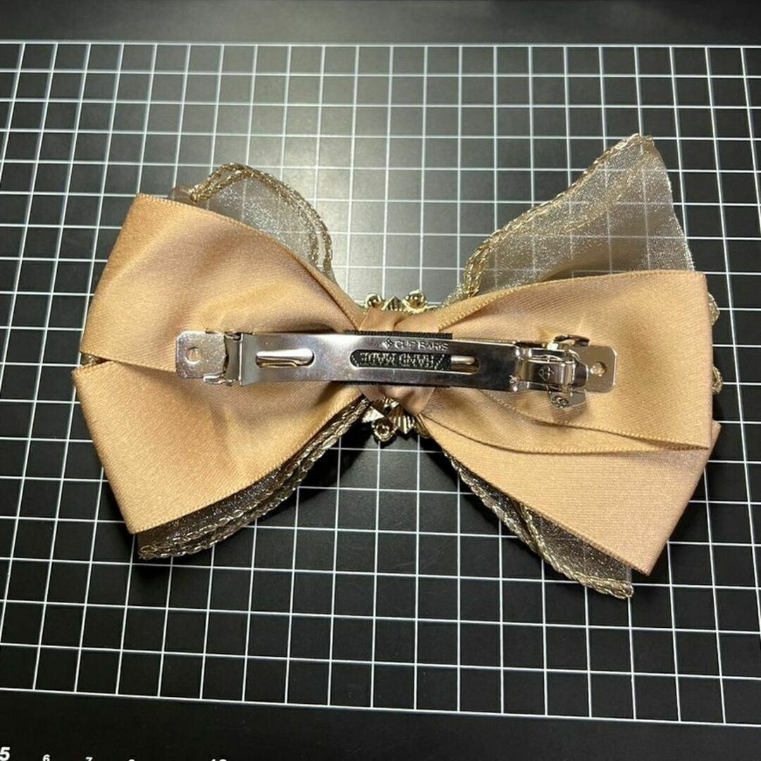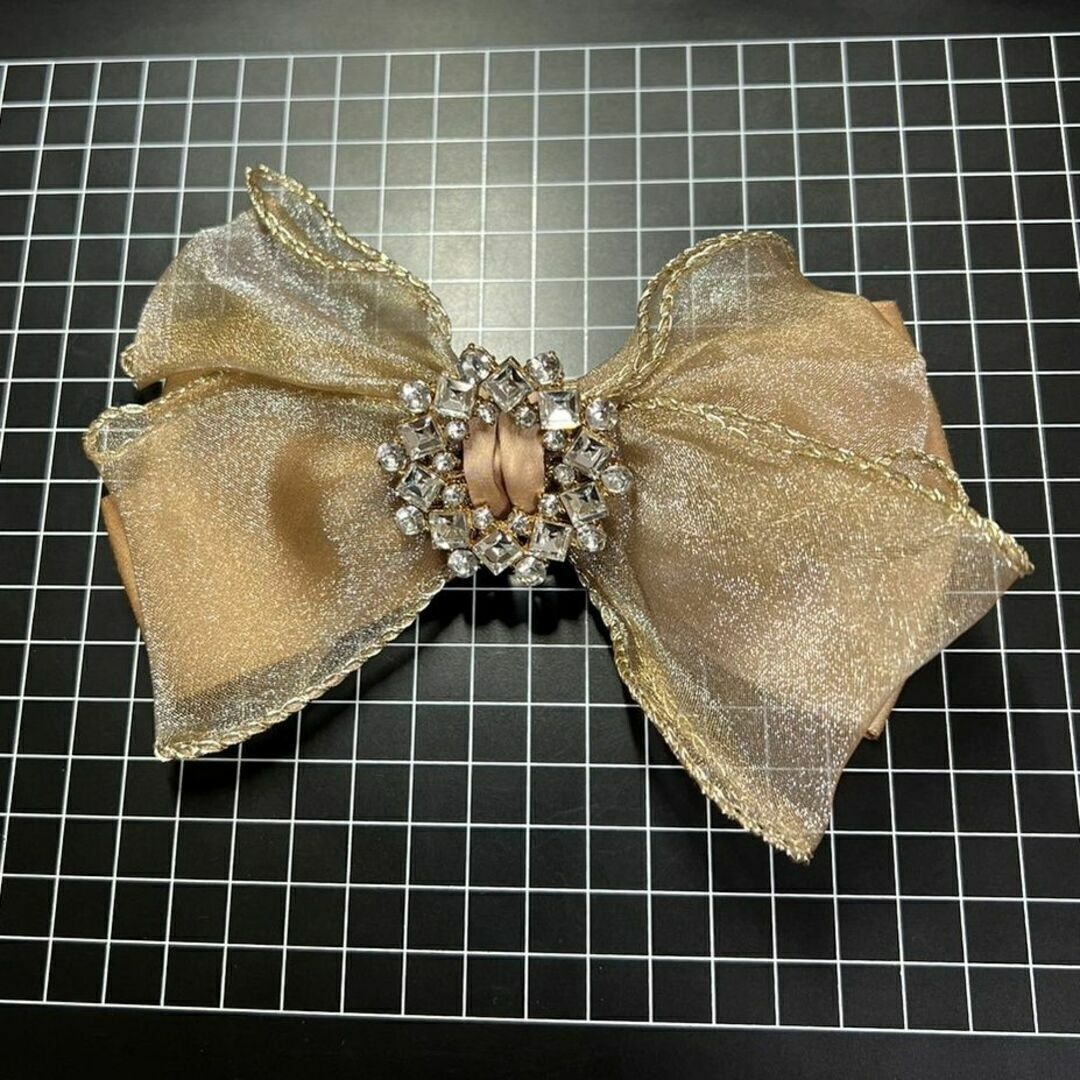 円形のラインストーンモチーフが輝く大きめリボンのバレッタです。