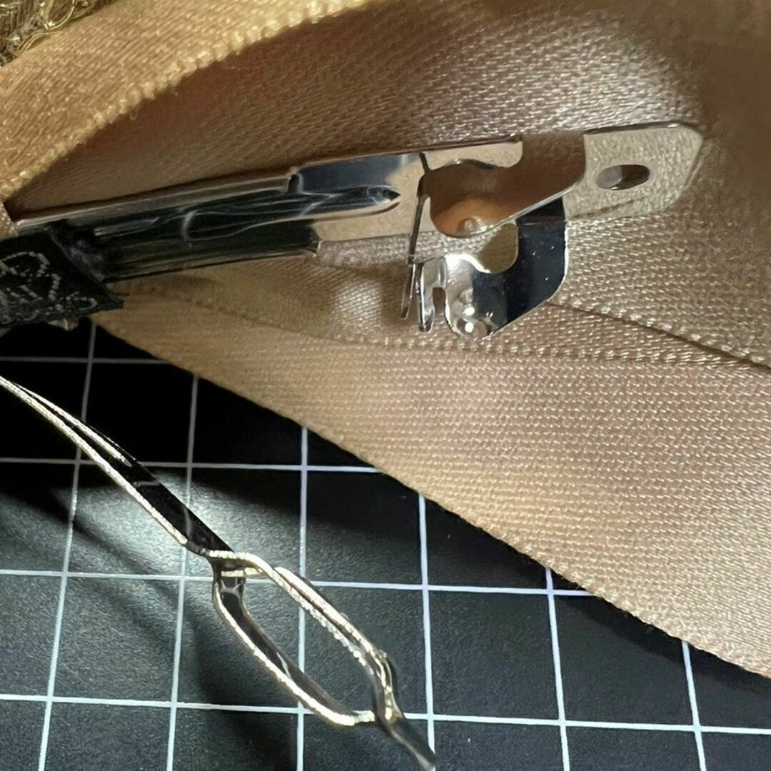 透ける感のあるシフォン地にゴールドの縁取りがされています。