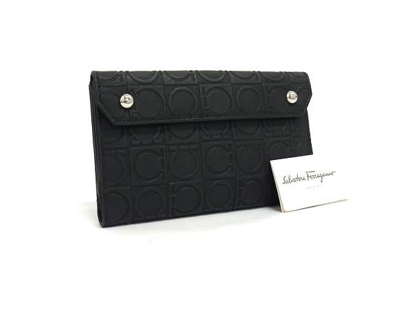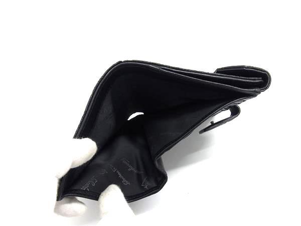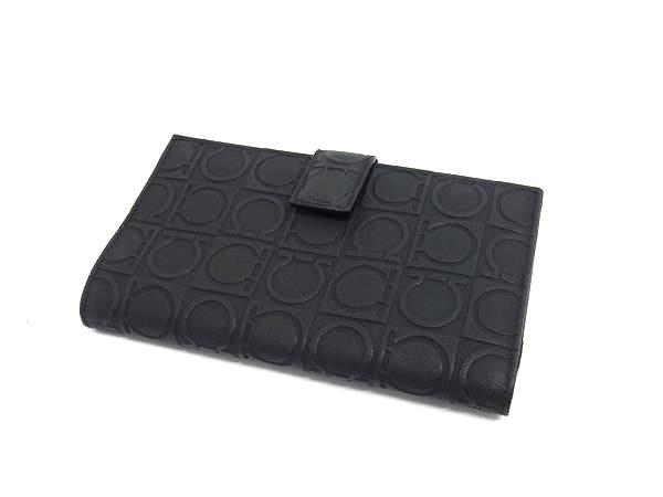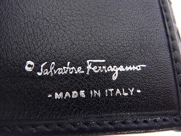 1円 ■美品■ Salvatore Ferragamo フェラガモ IK-224665 ガンチーニ柄 レザー 二つ折り 財布 ウォレット 札入れ ブラック系 FS6172