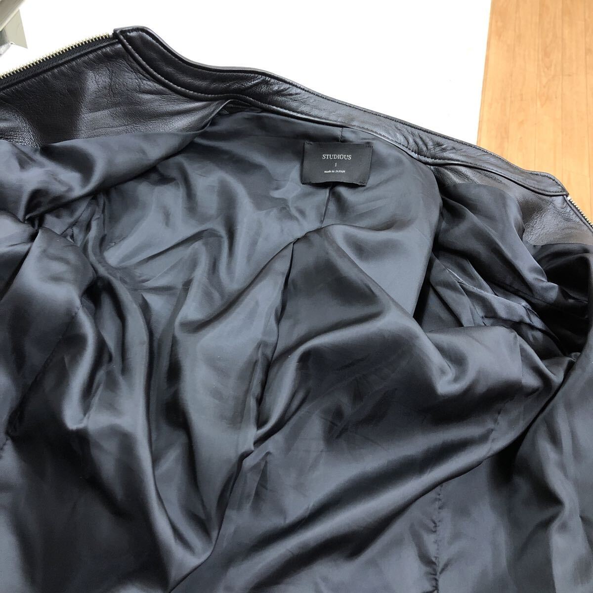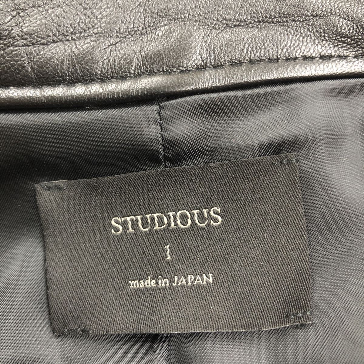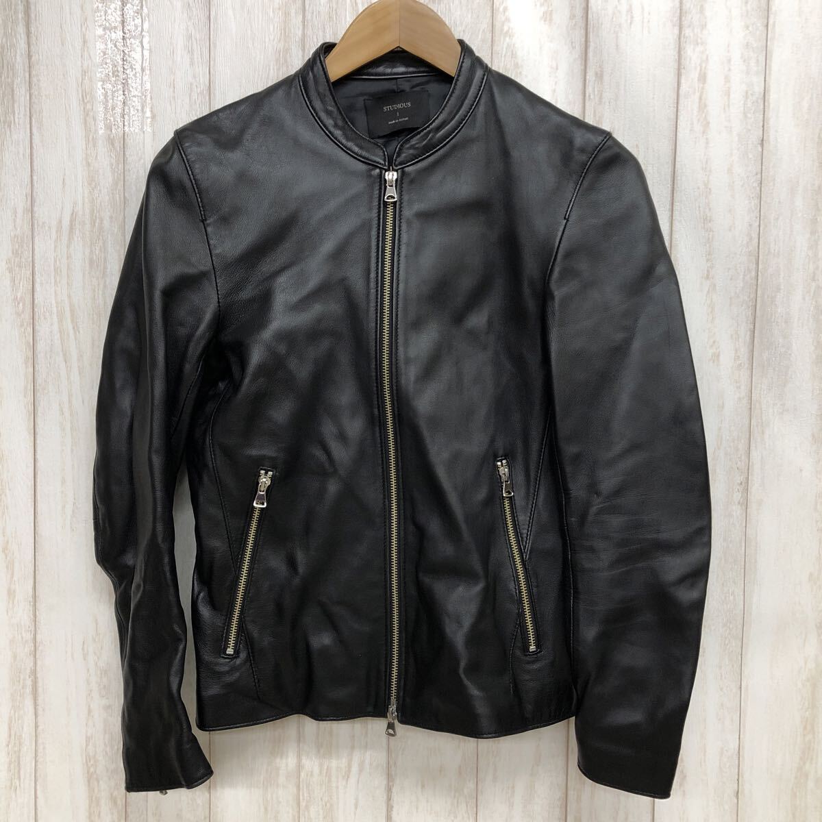 STUDIOUS ステュディオス レザージャケット サイズ1 ライダース ノーカラー 羊革 黒 レディース YF625
