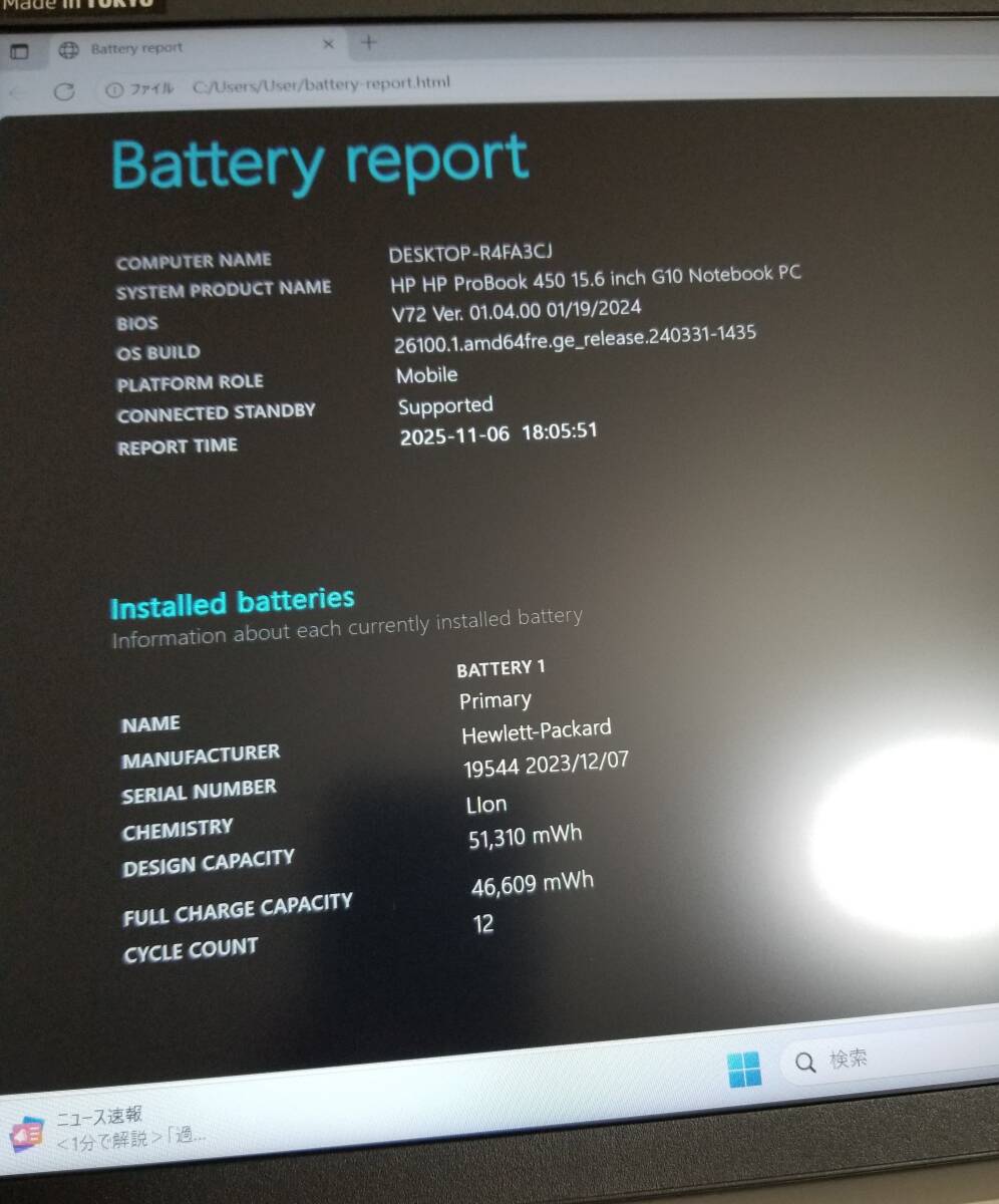 バッテリー:良好 (充電回数:¥12回)