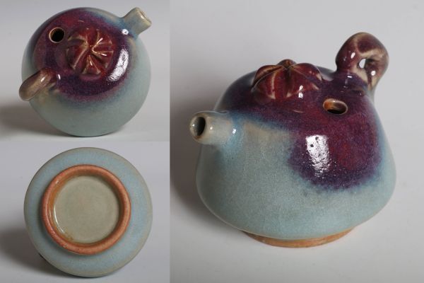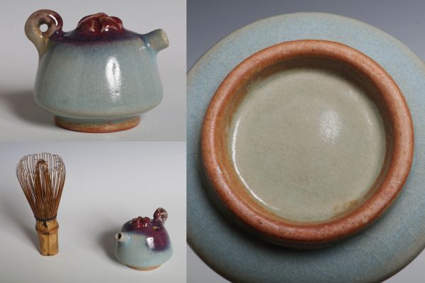 N26170 中国陶器 缸豆紅 鈞窯小水滴 書道具 文房具 水滴 水差 検:缸豆紅 鈞窯 均窯 中国 古玩 唐物