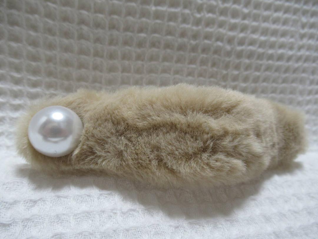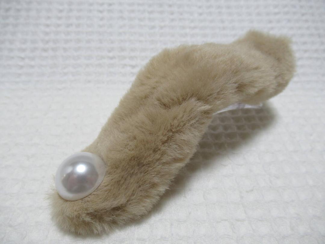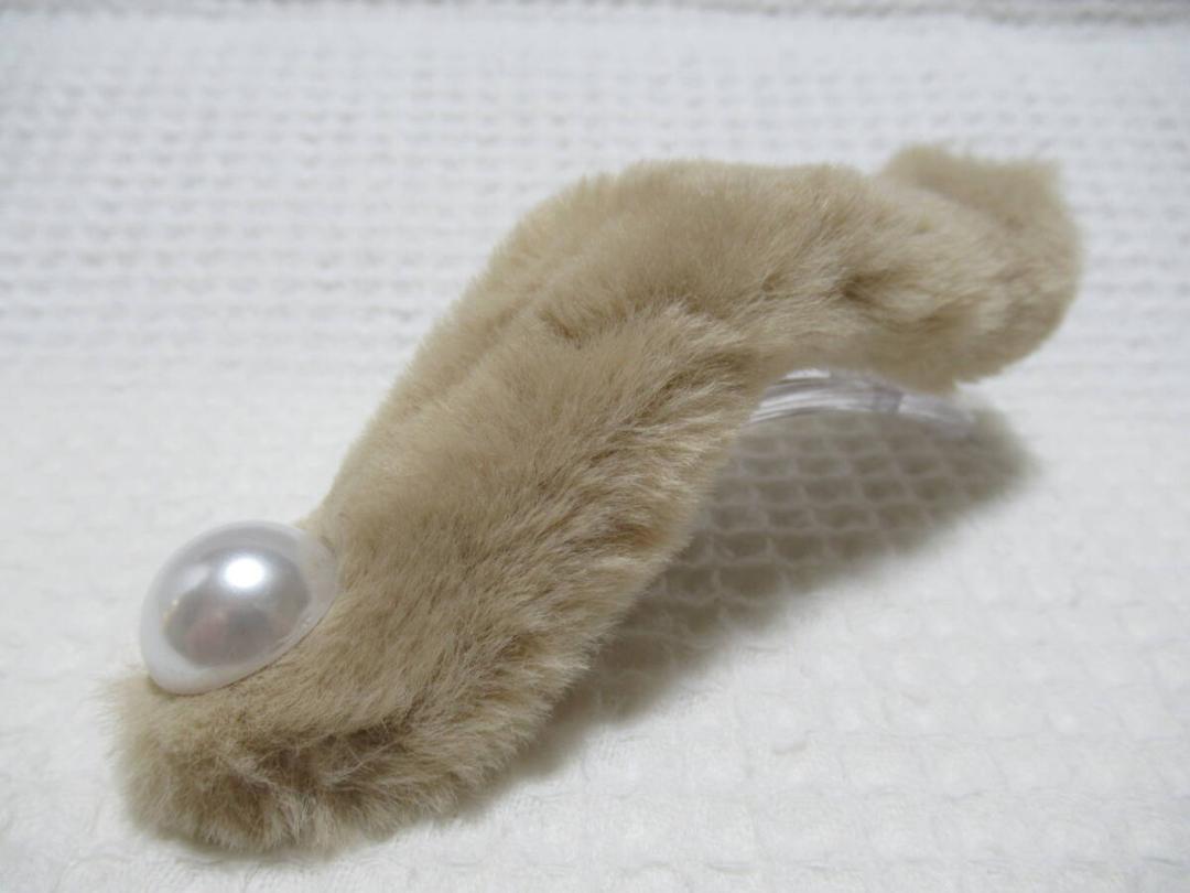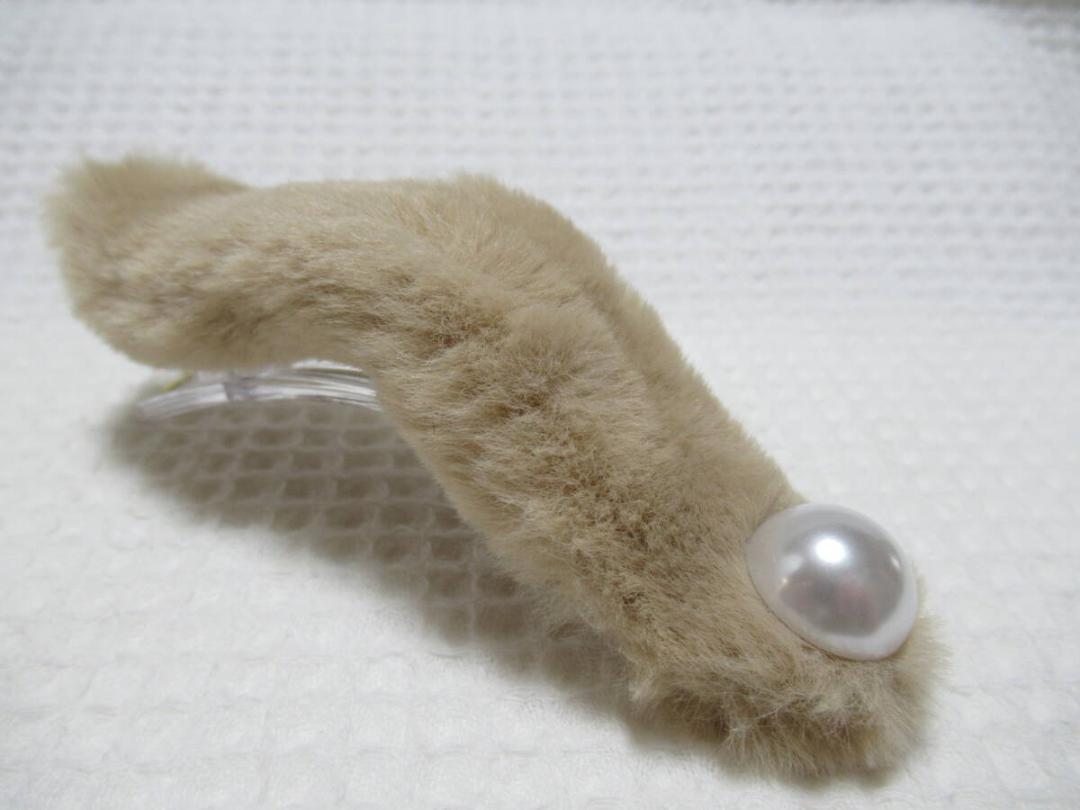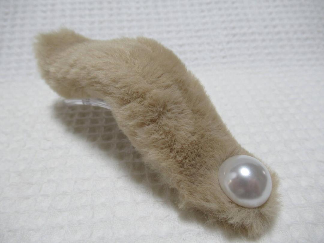 パールの半球型付きベージュ系色のフェイクファー クリア色のクリップ
