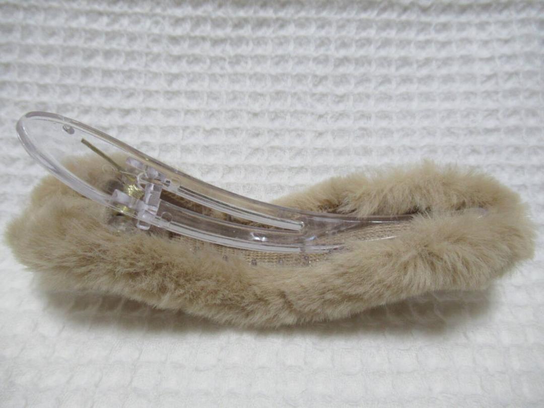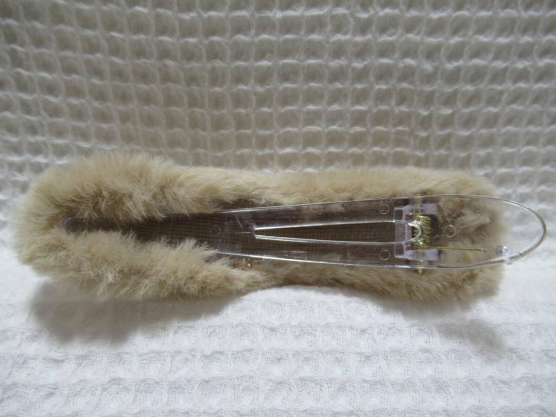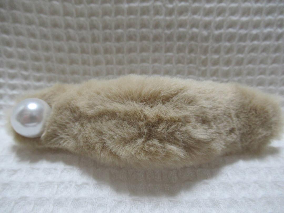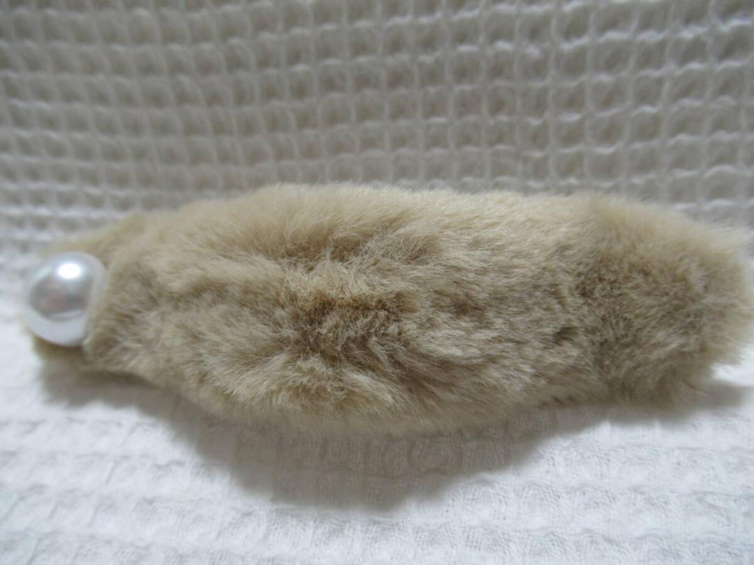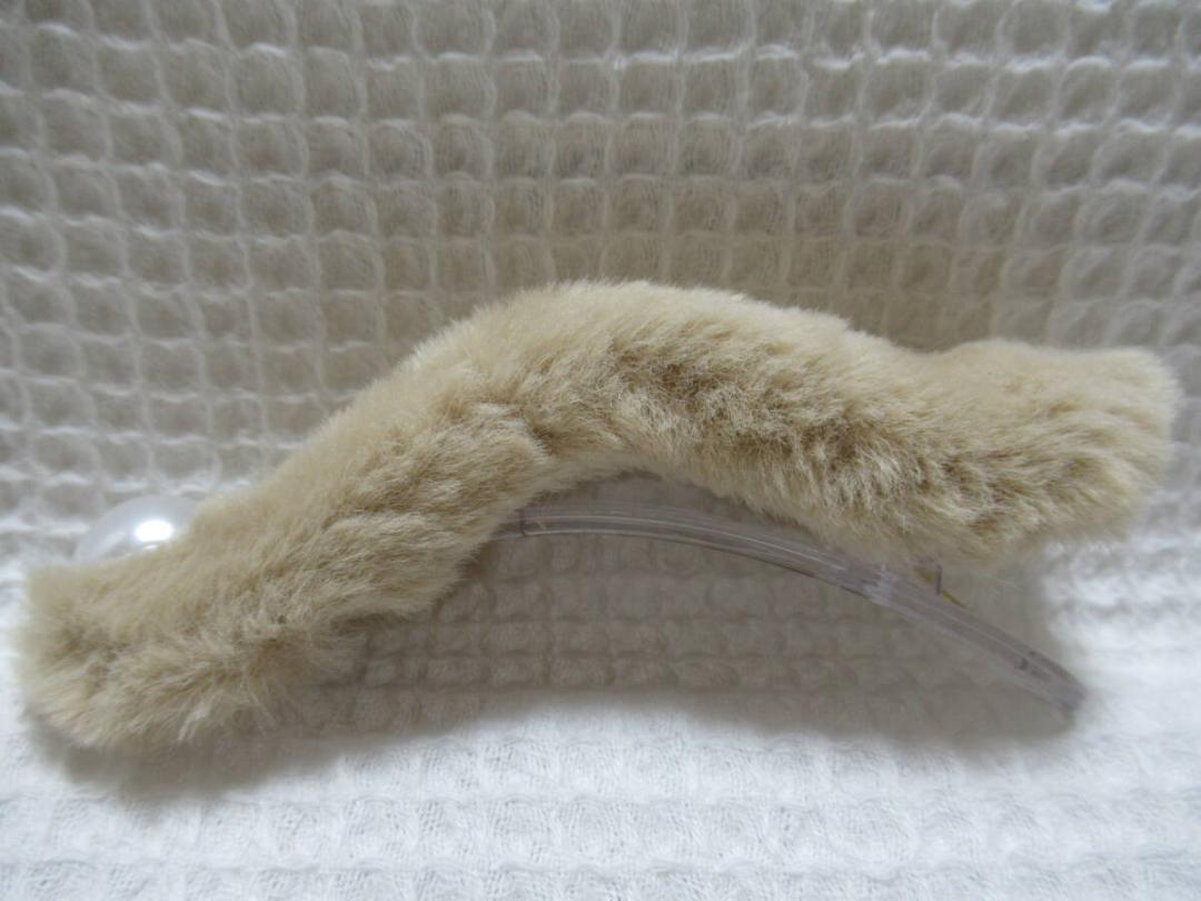 パールの半球型付きベージュ系色のフェイクファー クリア色のクリップ