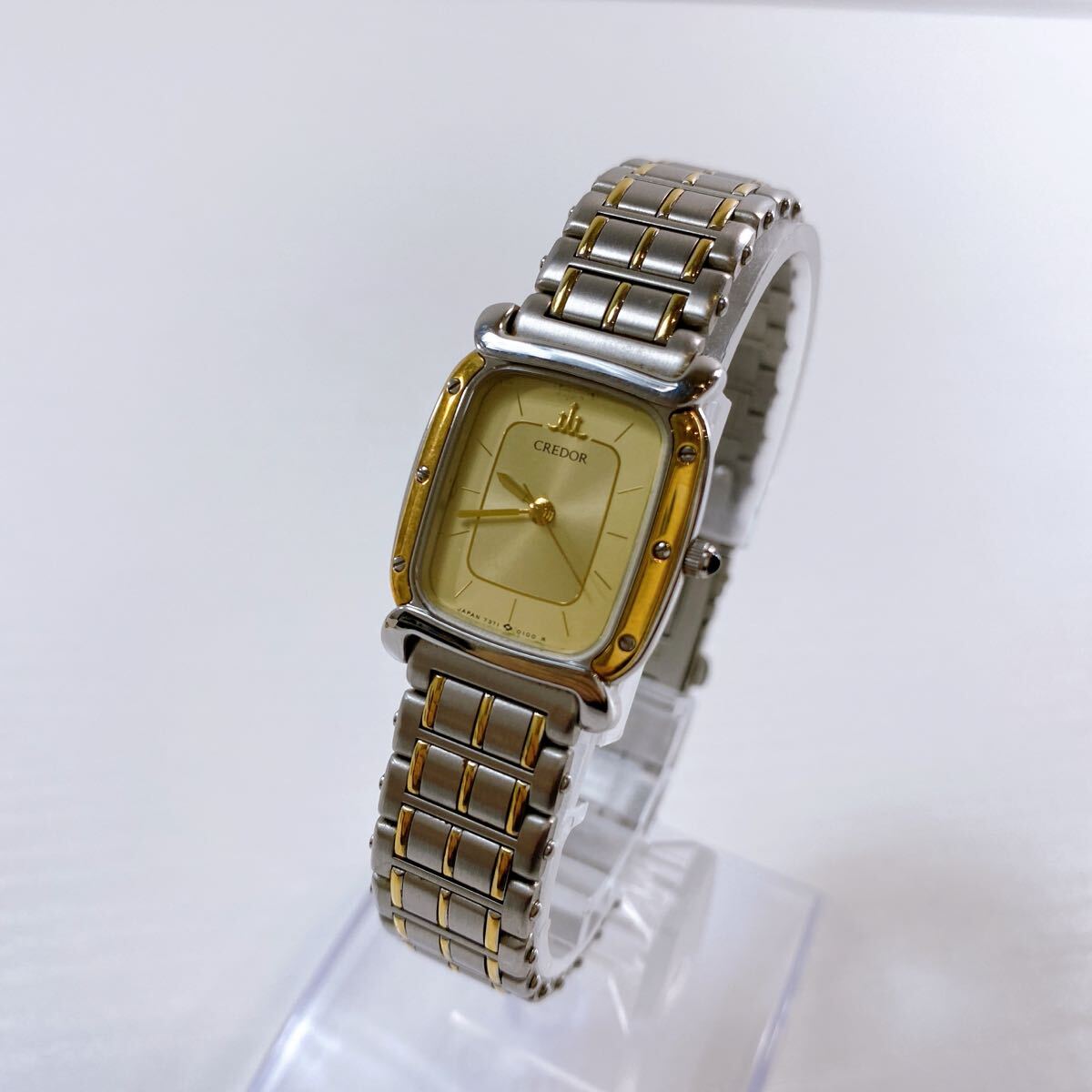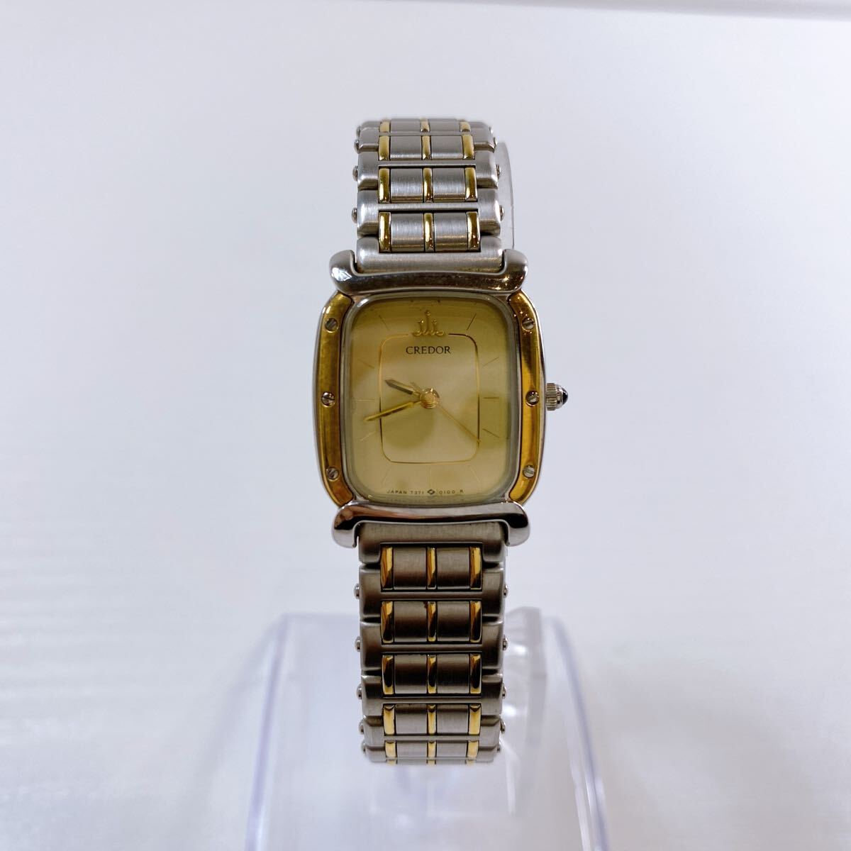 330【中古】SEIKO CREDOR セイコー クレドール 7371-5010 18KTベゼル スクエア クオーツ レディース腕時計 文字盤ゴールド 未稼働 現状品