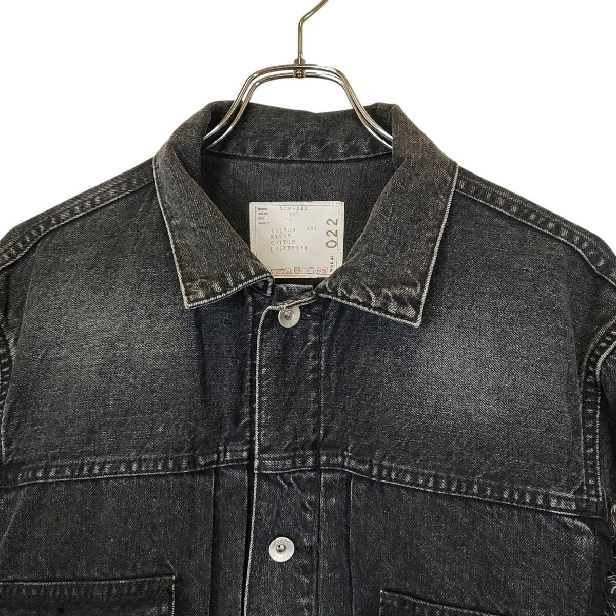 sacai サカイ Denim x MA-1 Jacket デニム ジャケット SCM-022 3 ブラック メンズ