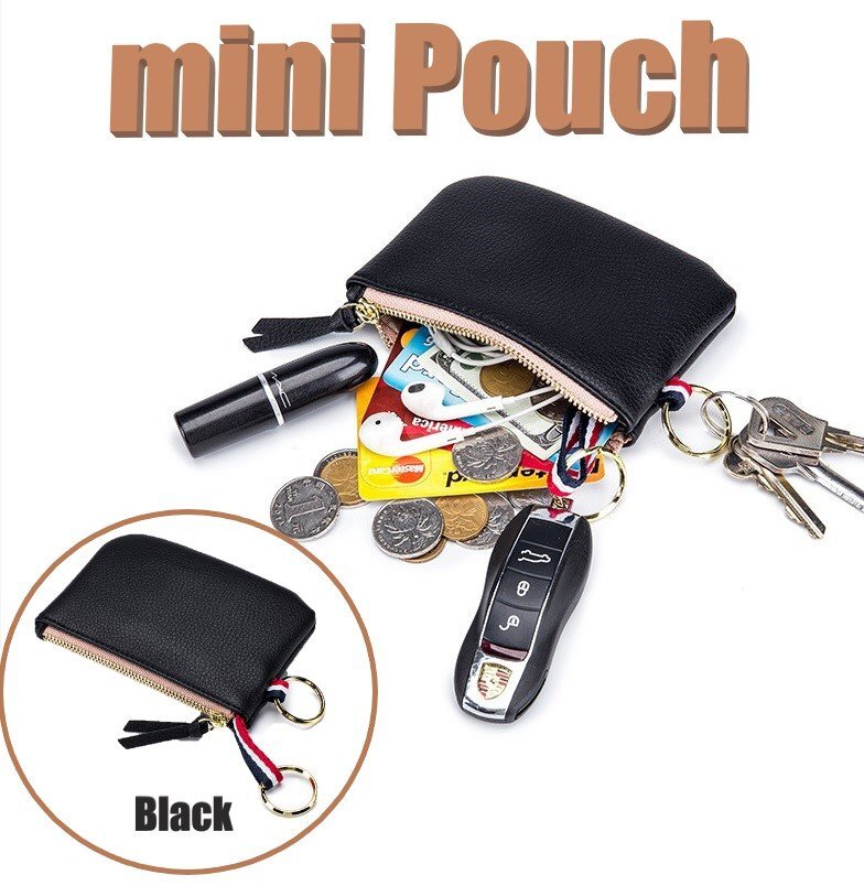 ミニポーチ 牛皮 ブラック レザー 鍵入れ 小銭入れ シンプル レザーキーケース n526