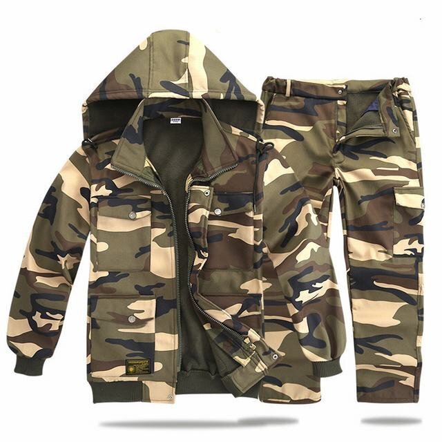裏起毛 上下セット メンズ 防寒着 フード脱着 ジャンパー あったか 暖かい 作業服 パーカー フード付き 秋冬 冬物 カーキ迷彩 3XL