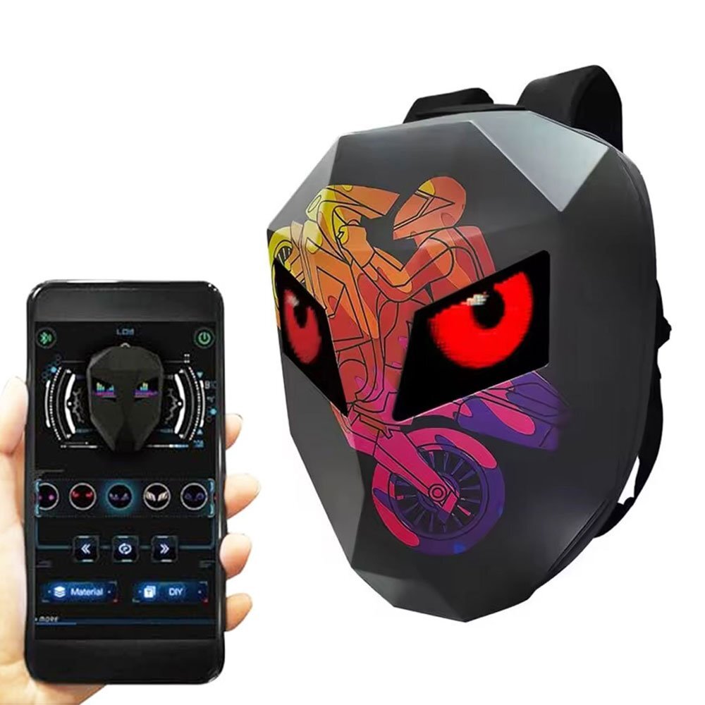 悪魔の眼 プログラム可能なLEDスクリーン LEDバック ヘルメット収納可能 ノートPC収納 自転車 オートバイ バイク 日本語アプリ