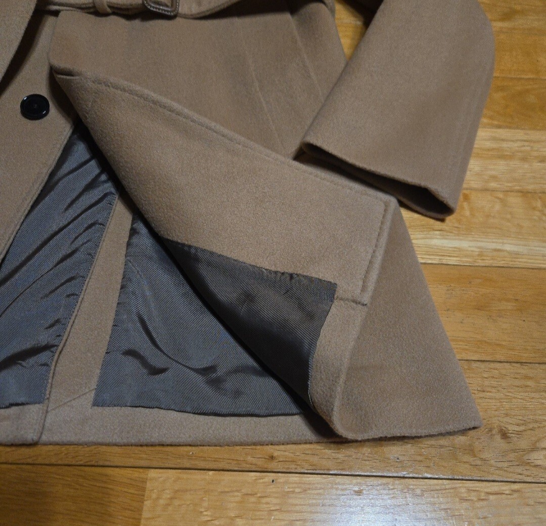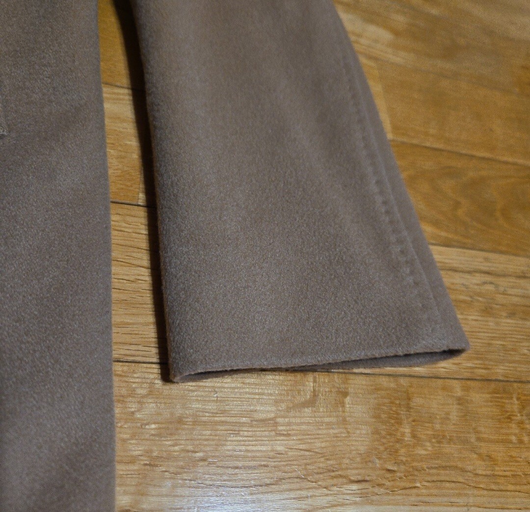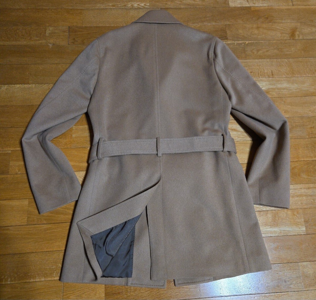 やや厚手の肌触りの良いメルトンウール×カシミヤのベージュの為高い保温性、またお洒落な印象の生地になっており上質な質感。幅広い年齢層にお薦め出来る上質コートをお探しだった方はこの機会に是非お見逃し無く。