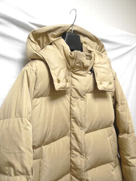 色 ベージュ サイズ 38 寸法 着丈63cm位 身幅55cm位 袖丈脇下から51cm位 (若干の誤差が生じてしまう場合がありますのでご了承下さい) 状態 3回程着用していますがよごれなどはなく良好です。 素材 表地 ポリエステル100% 中わた ダウン90% フェザー10% 裏地 ポリエステル100% 定価 43000円+TAX 以下HPより ダウン90%、フェザー10%で軽量かつ保温性に優れた中綿を採用しています。 一見カジュアルながらも、ゴールドのボタン使いやさりげないAラインシルエットが女性らしいニュアンスに。 裾のドローコードで調節ができるので、様々なボトムとバランスよく着こなせます。 さらに、フードも取り外しでき、スタンドカラーとして着たり、スウェットパーカーを合わせたりしても可愛いです。 |