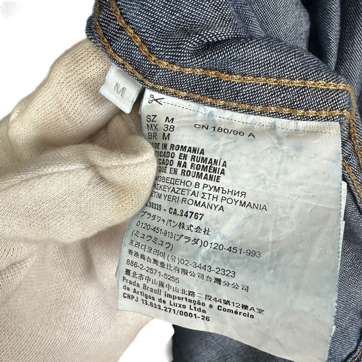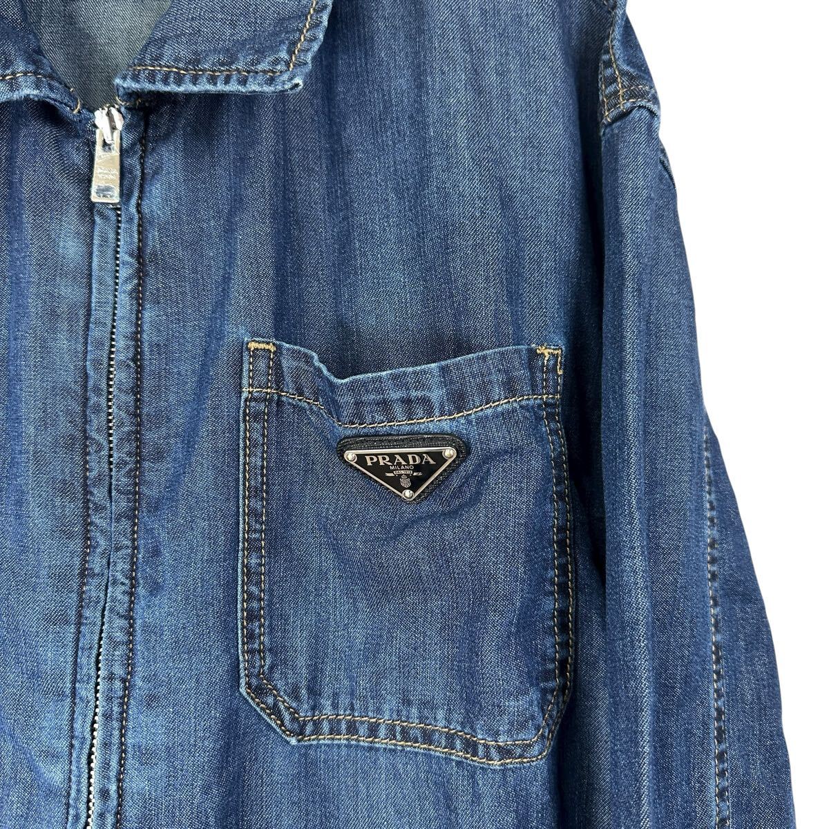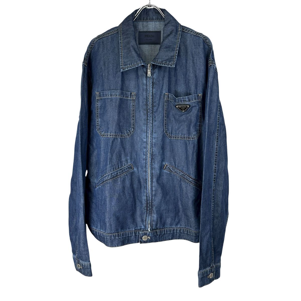 ロゴプレート ジップアップ デニムジャケット トライアングルロゴ ブルゾン