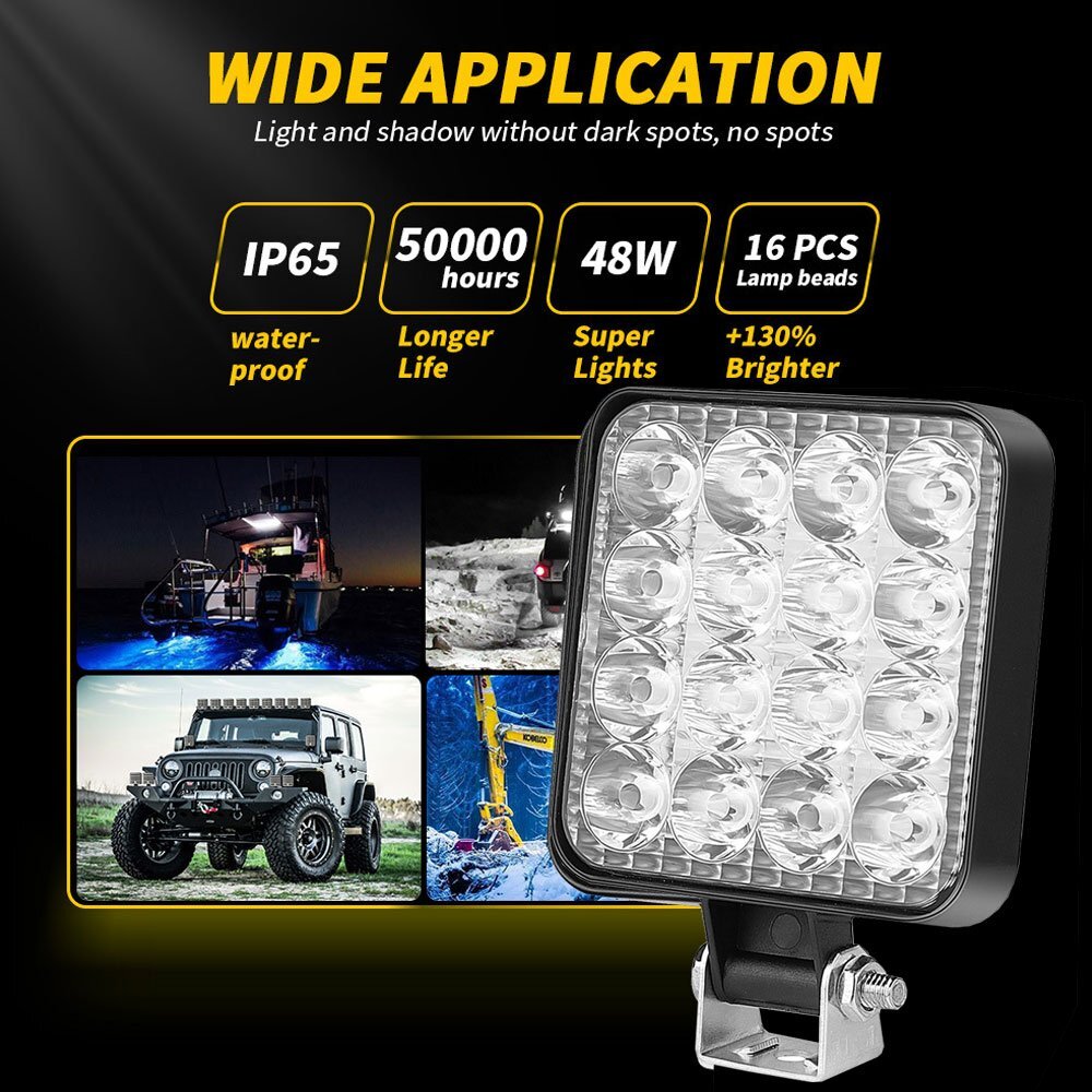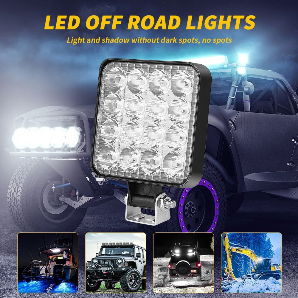 送料無料.. 48W LED ワークライト 作業灯 カラー:ホワイト 12V トラック UTV ATV トレーラー ボート 4X4 建築機械 道路照明 工事現場 4個