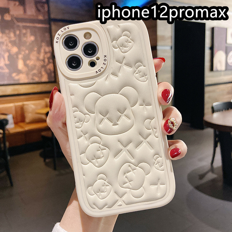 iphone12promaxケース カーバー TPU 可愛い お洒落 熊 軽量 ケース ホワイト1