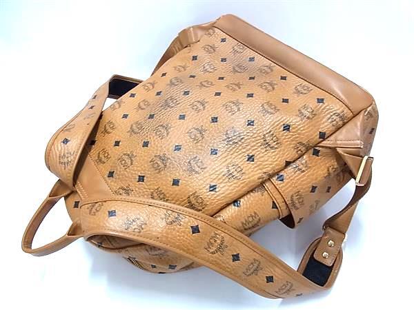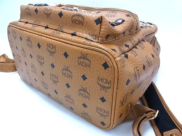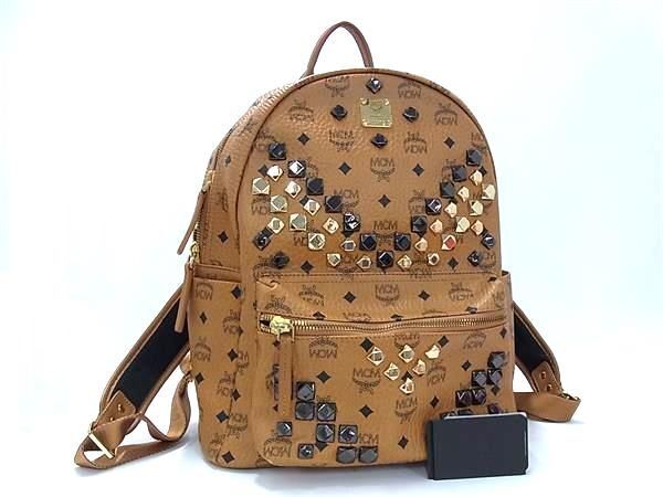 1円 MCM エムシーエム モノグラム ヴィセトス柄 レザー スタッズ リュックサック バックパック デイパック ブラウン系 FT0488