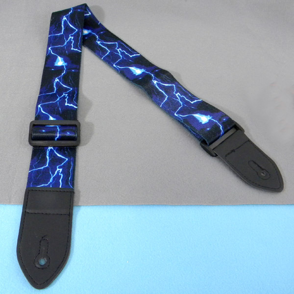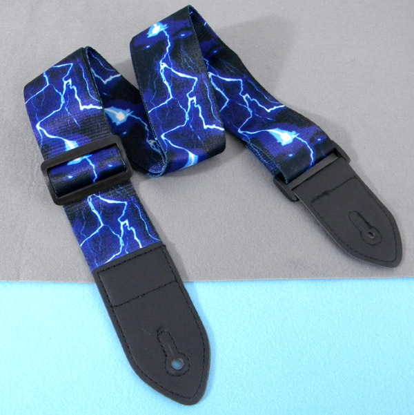★ ギター ストラップ ★ 青(イナズマ柄)★ 新品・未使用 ★ 送料無料