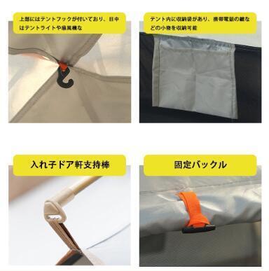 <!-- description -->ご覧頂きありがとうございます 商品状態:未使用品 カラー: クラウドグレー 展開サイズ: 220*200*145cm 収納サイズ:77×16×16cm 重量: 3kg 定員:3~4名様 素材: 210D オックスフォード生地 ブラケット: ソリッドグラスファイバーロッド 日焼け止め指数:UPF50+ 防雨指数:P<!-- /description --><br><br>ご覧頂きありがとうございます<BR> <BR> 商品状態:未使用品<BR> カラー: クラウドグレー<BR> 展開サイズ: 220*200*145cm<BR> 収納サイズ:77×16×16cm<BR> 重量: 3kg<BR> 定員:3~4名様<BR> 素材: 210D オックスフォード生地<BR> ブラケット: ソリッドグラスファイバーロッド<BR> 日焼け止め指数:UPF50+<BR> 防雨指数:PU2000+<BR> 付属品:収納袋+地釘+防風ロープ<BR> <BR> <BR> ※素人採寸の為、誤差が生じる場合がございます。ご了承下さいお願いします。<BR> <BR> 発送詳細<BR> ※送料は2600円です 。(沖縄 3600円です)<BR> 同梱の場合、2点目から1点につき1000円になります。<BR> <BR> ※佐川急便、ヤマト運輸で発送いたします。(発送方法のご指定は対応致しかねます、ご了承ください。)<BR> ※発送後、追跡番号と追跡ページをお知らせします。<BR> <BR> ♪ご入金確認後、5営業日以内発送手続きをいたします。お急ぎの方は必ず質問欄よりお問い合わせください。<BR> <BR> <BR> 注意事項<BR> <BR> ※簡易包装となります。領収書の発行はしておりません,ご了承ください。 <BR> <BR> ※実物のお色について、撮影環境や光線、またモニターの設定等により、多少異なる場合もあります。ご了承下さいますようお願い致します。<BR> <BR> ※発送する前に、厳しく検品いたしますが、万が一、不良・破損・誤納品があった場合は、 商品到着後3日以内にお知らせ下さい。誠意を持って早急に対応致します。<BR> <BR> ※他にご不明な点がありましたらどうぞお気軽にお問い合わせください。