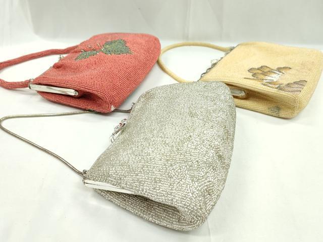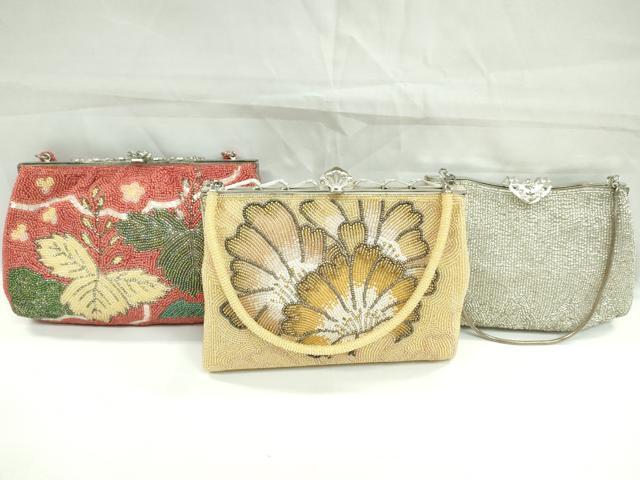 平和屋着物▼和装小物 和装バッグ ビーズバッグまとめて3点 ハンドバッグ 総ビーズ 花文 桐 逸品 CAAW4385ju