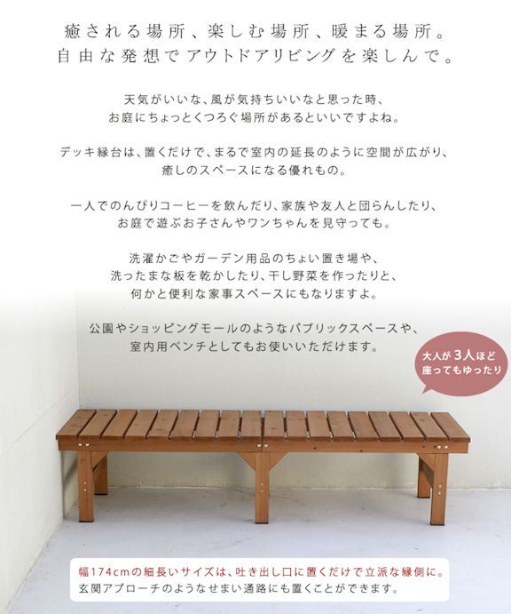 天然木ユニット縁台ベンチ 174x55cm ウッドデッキ ガーデン(1001)