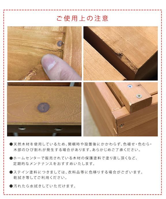 ※天然木材を使用している為、開梱時や設置後に関わらず、