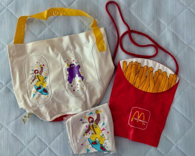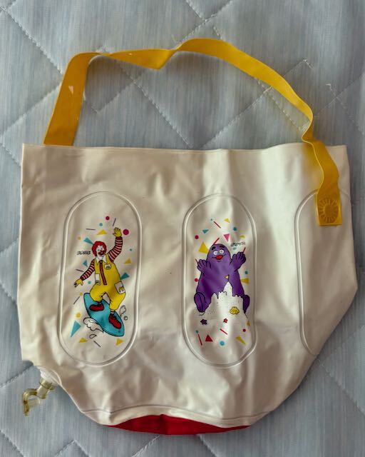 1990年 マクドナルドのお子さまセット ハッピーセットのおまけです。 ビーチボール ビーチバケツ ポテトバッグ ビーチボールとビーチバケツは未開封の物を出品いたします。 経年によるビニールのベタつきがあります。 保管時の折りシワがあります。 空気を入れての状態の確認はしておりません。 :::::::::::::::::::::::::::::::::: 古い物、ヴィンテージ品です。 長期保管していた物で新品ではありません。 キズ、擦れ、印刷の剥がれ、褪色、変色、汚れ、その他経年による劣化等ございます。 ご理解の上、ご検討よろしくお願いいたします。 | ||||||||