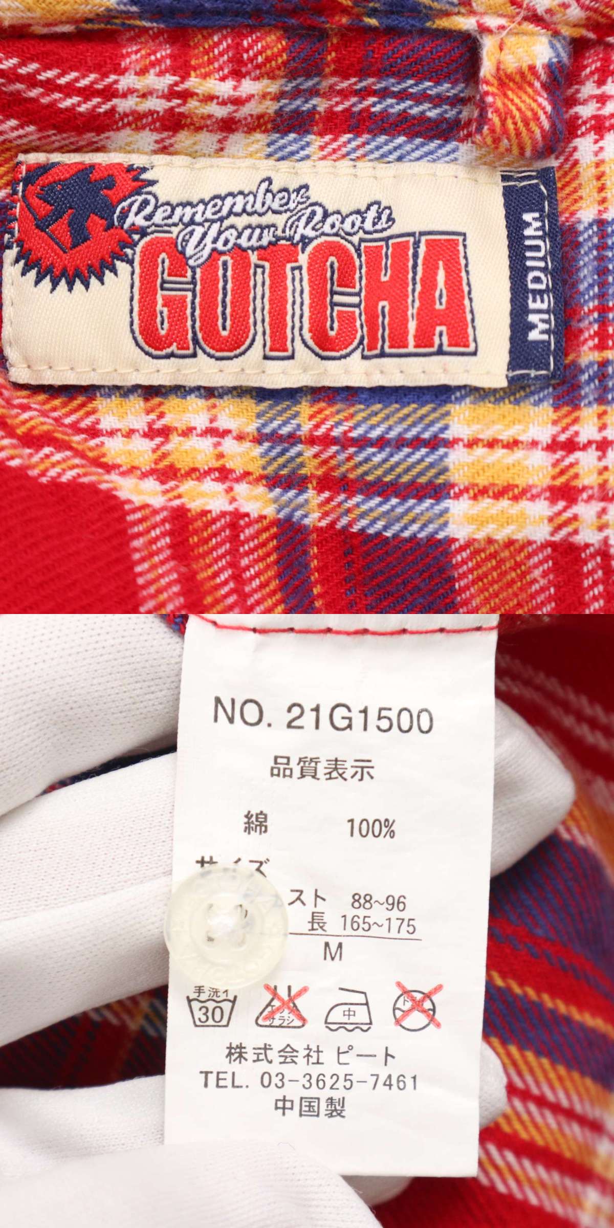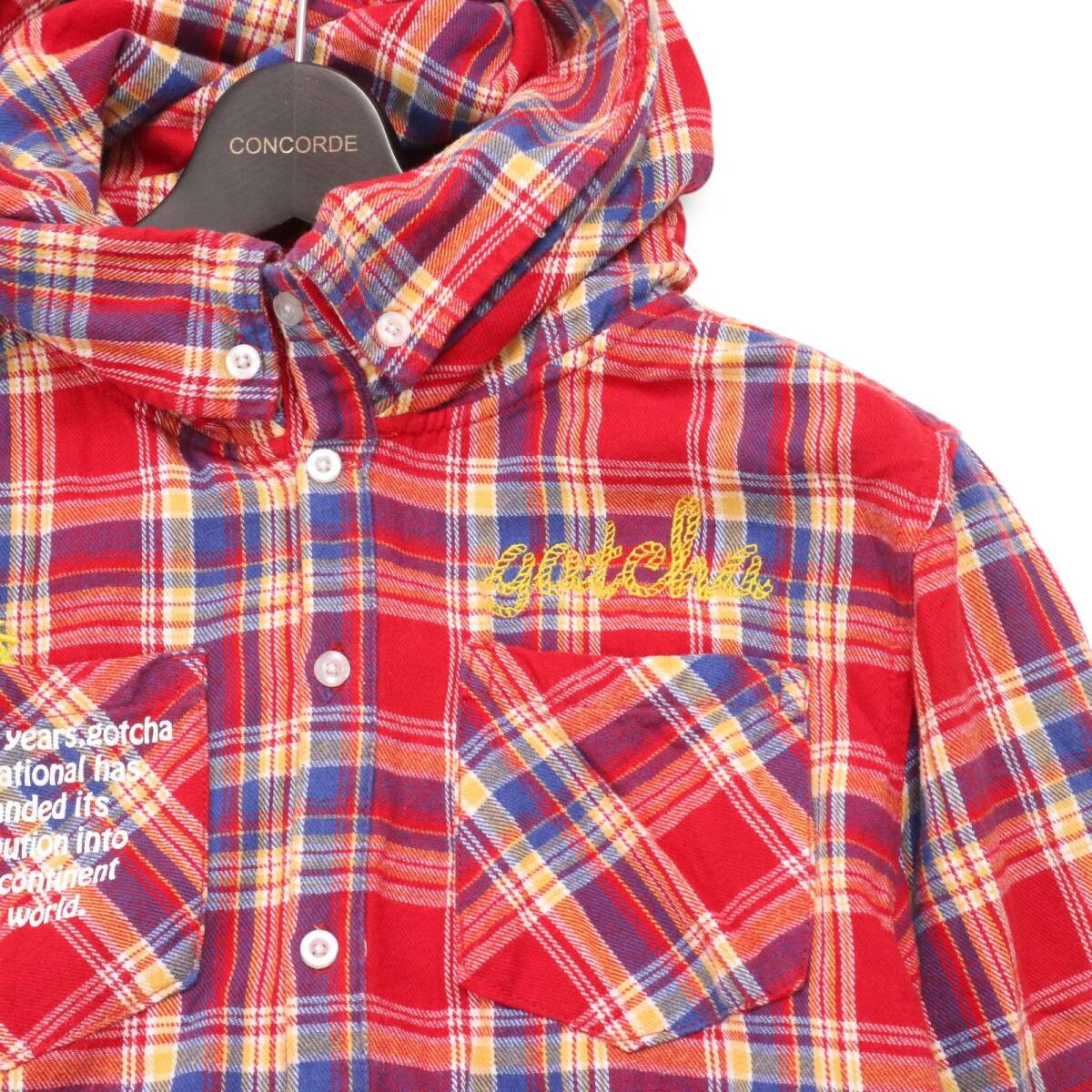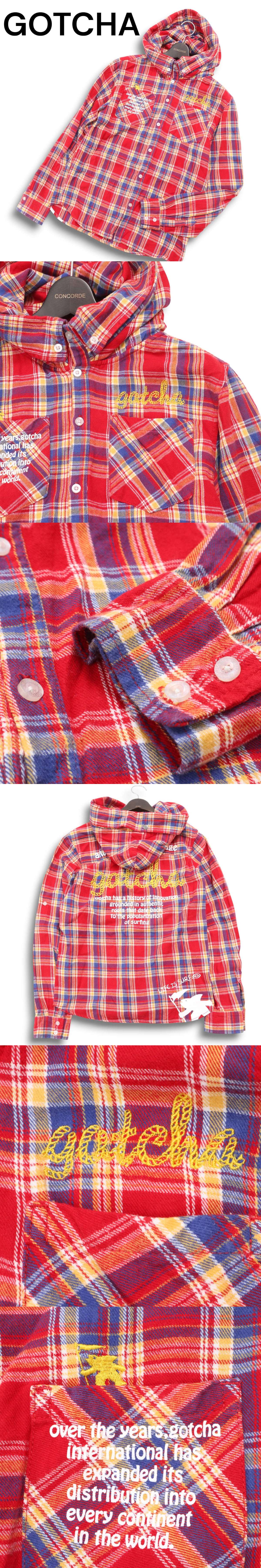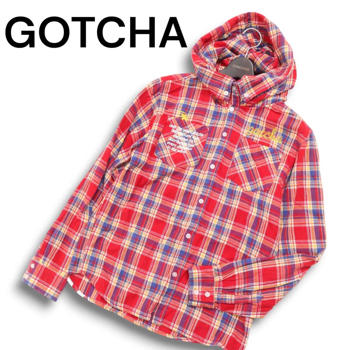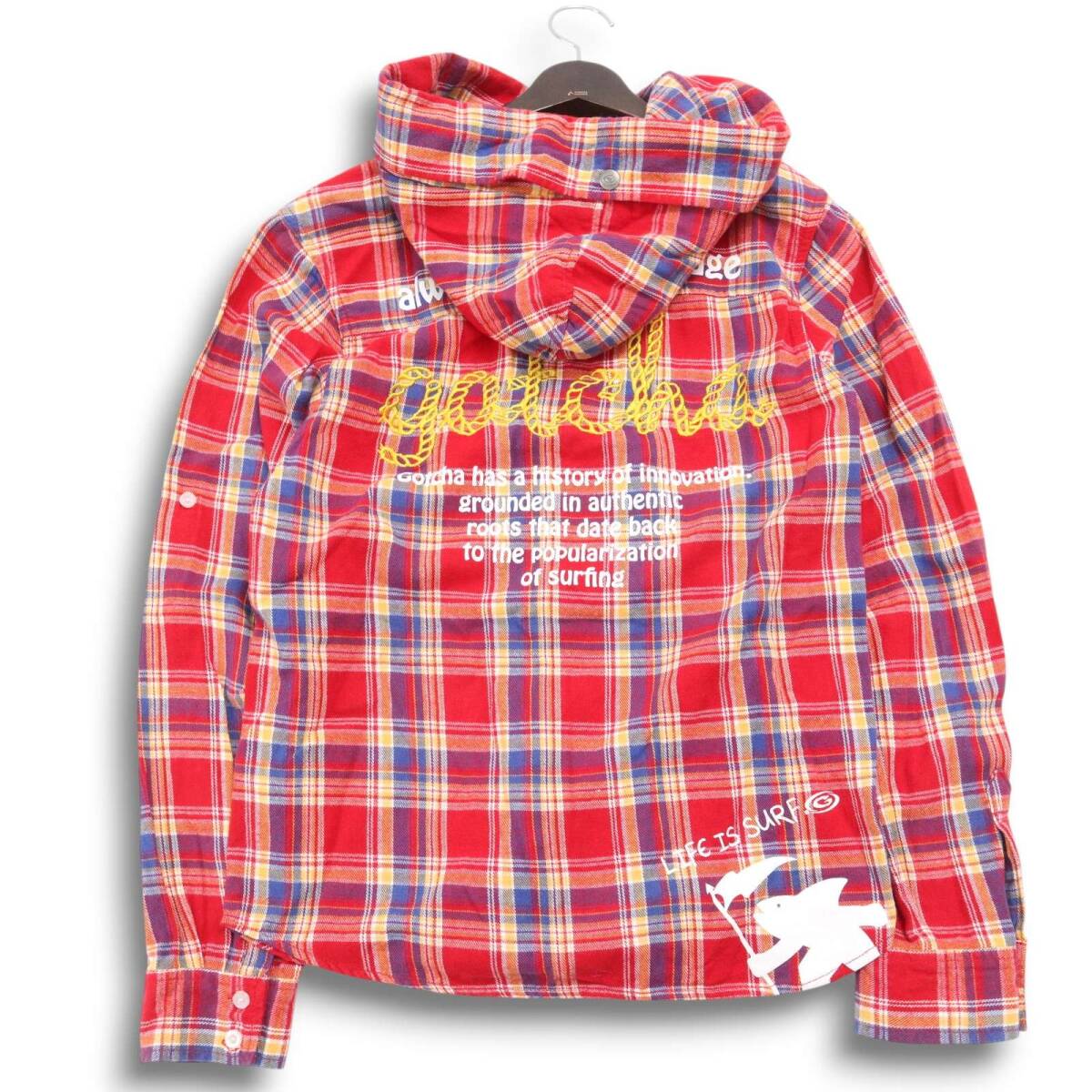 GOTCHA ガッチャ 通年 ロゴ刺繍★ チェック 長袖 フーディ ネル シャツ パーカー Sz.M メンズ サーフ
