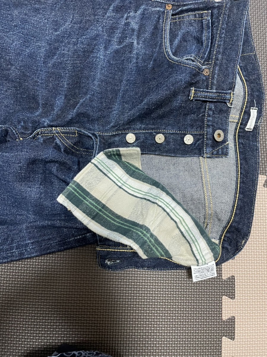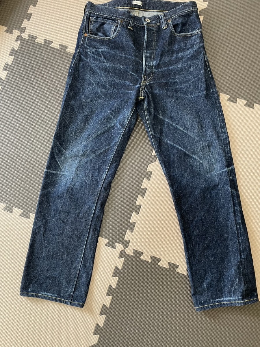 寸法は素人採寸でウェスト81センチくらい股上74センチくらい裾幅20センチくらいです。