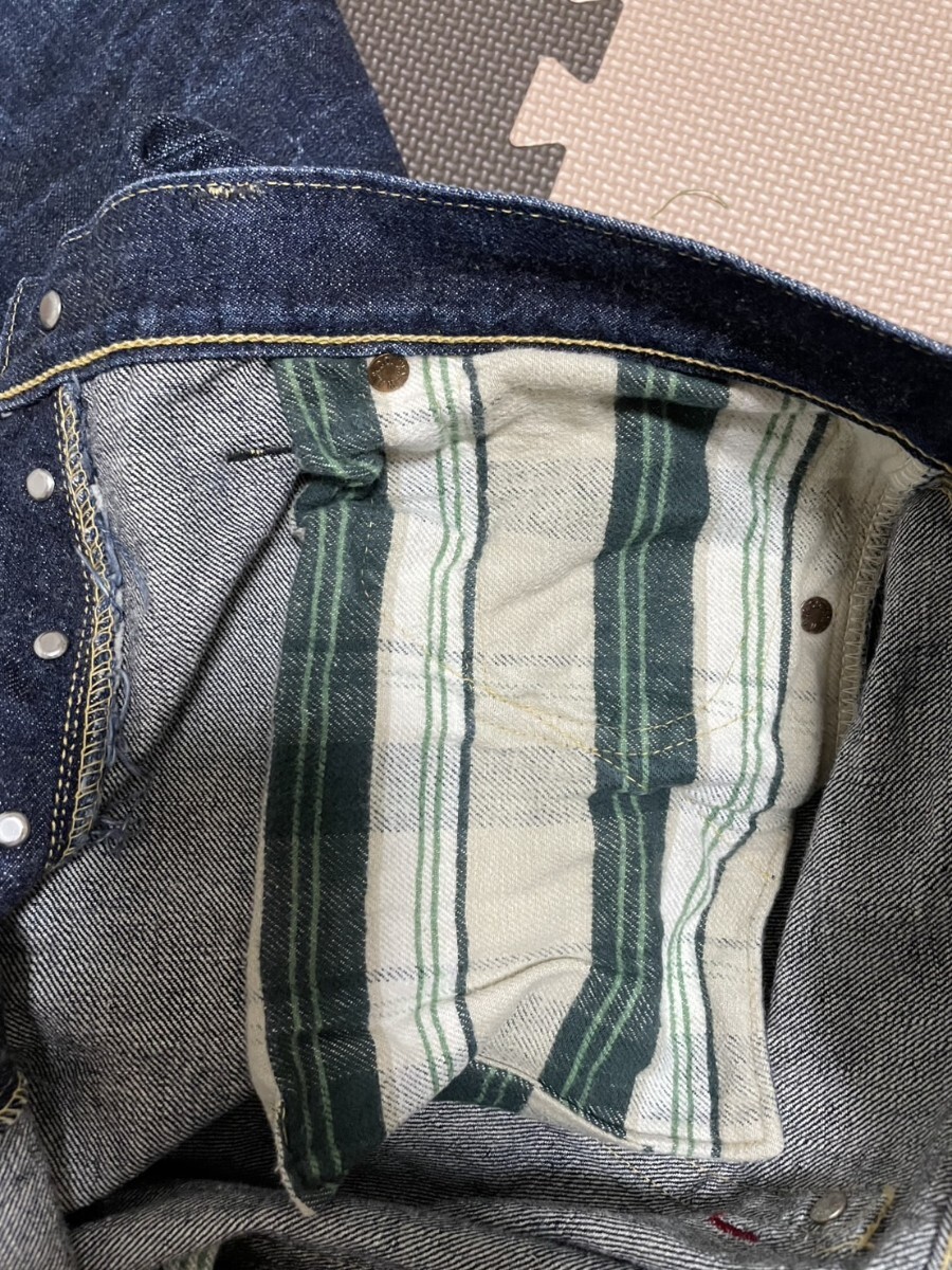 膝裏にも蜂の巣がみられます。サイズはゴールデンサイズの W32です。