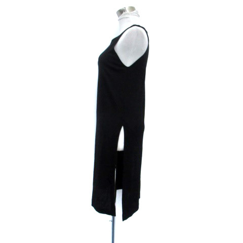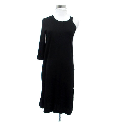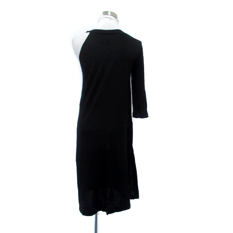 ブラック バイ マウジー ワンピース ラウンドネック ノースリーブ 七分袖 アシンメトリー ミモレ丈 F 黒 レディース