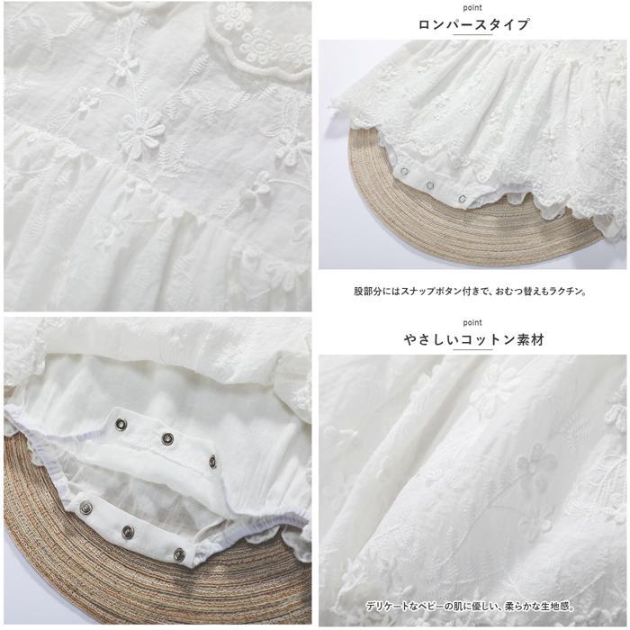 商品説明 | ・・お花の刺繍デザインがキュート♪ロンパースタイプのセレモニードレスが登場。 ・【ロンパースタイプ】 ・背面ボタン仕様で着替えがカンタン!股部分にはスナップボタン付きで、おむつ替えもラクチン。 ・【可愛らしさ満点】 ・スカラップデザインの丸襟も可愛さアップのポイント。 ・【やさしいコットン素材】 ・デリケートなベビーの肌に優しい、柔らかな生地感。 ・【嬉しい帽子付き】 ・ドレスとお揃いの帽子がセットに♪あご紐でサイズ調節が可能。 ・【特別な日の1着♪】 ・思わず写真に収めたくなる可愛さ!退院時やお宮参り、写真撮影などで大活躍。 |