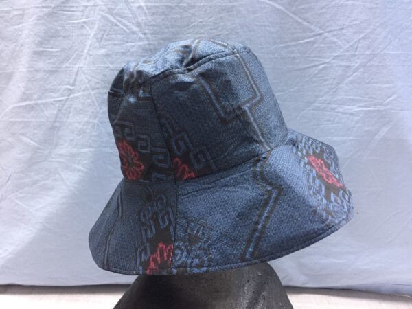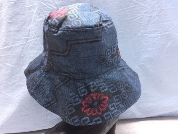 オールド レトロ エスニック オリエンタル ジオメトリック総柄 帽子 カプリハット レディース 紺