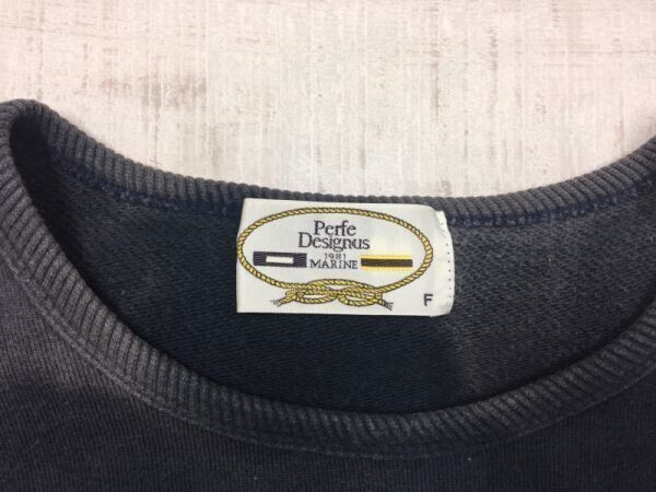 Perfe Design+us パフィーデザイナース 80s オールド マリン 古着 エルボーパッチ スウェット トレーナー メンズ バックプリント有 F 紺 です。