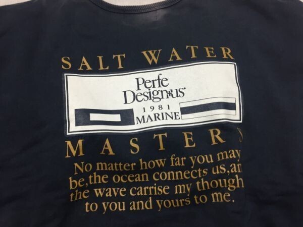 Perfe Design+us パフィーデザイナース 80s オールド マリン 古着 エルボーパッチ スウェット トレーナー メンズ バックプリント有 F 紺