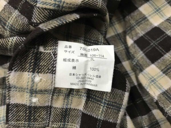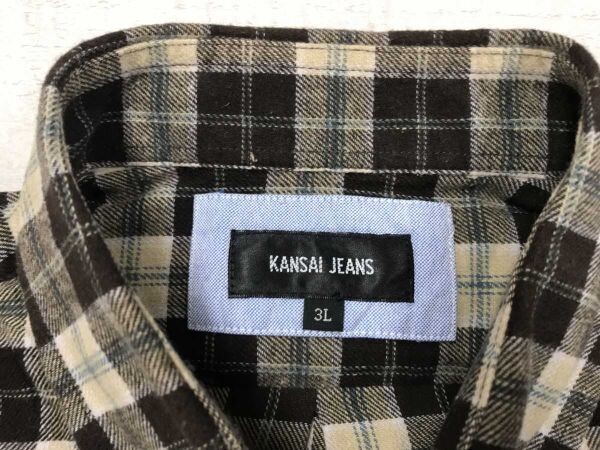 KANSAI JEANS カンサイジーンズ 山本寛斎 アメカジ ワーク 長袖チェックシャツ メンズ ボタンダウン 大きいサイズ 3L ベージュです。