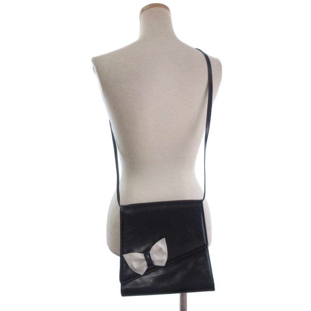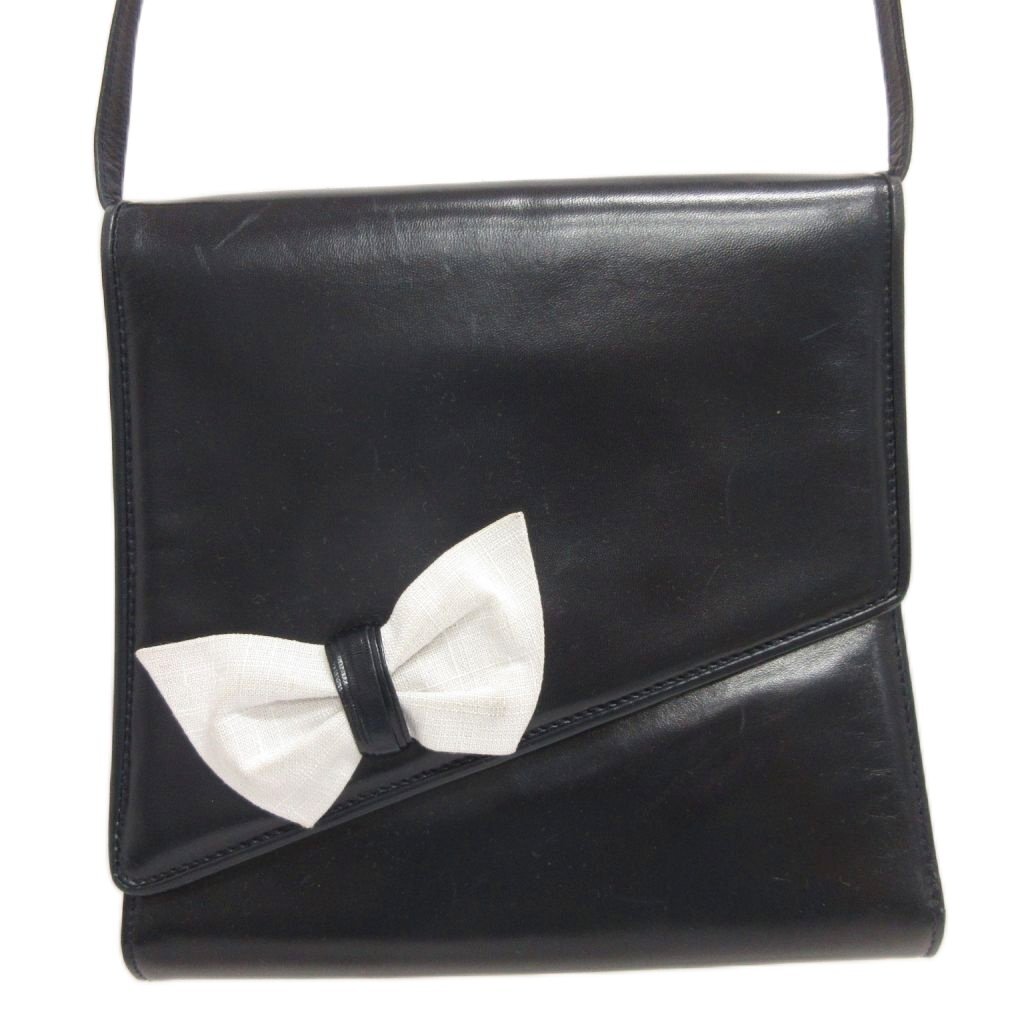 バリー BALLY リボン フラップ ショルダーバッグ レザー 濃紺 ダークネイビー レディース