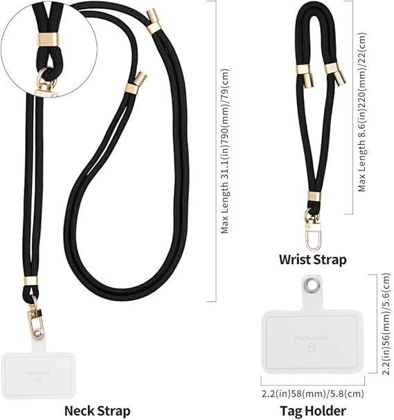 MJ-H322★[Sinjimoru] 2本【タグパッチ改良】 スマホストラップ、スマホショルダーストラップ・スマホハンドストラップとの2本入り スマホストラップ首掛け iPhone落下防止 紛失防止 長さ調整可能 ワイヤレス充電 携帯ストラップ Hand Shoulder Strap set Black