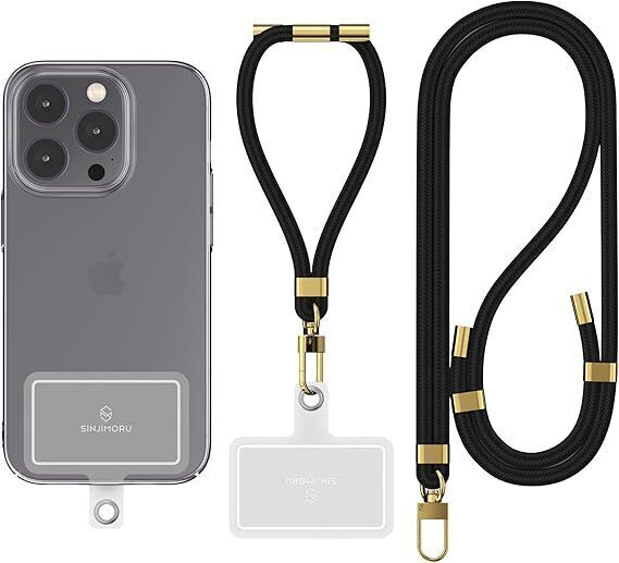 MJ-H322★[Sinjimoru] 2本【タグパッチ改良】 スマホストラップ、スマホショルダーストラップ・スマホハンドストラップとの2本入り スマホストラップ首掛け iPhone落下防止 紛失防止 長さ調整可能 ワイヤレス充電 携帯ストラップ Hand Shoulder Strap set Black
