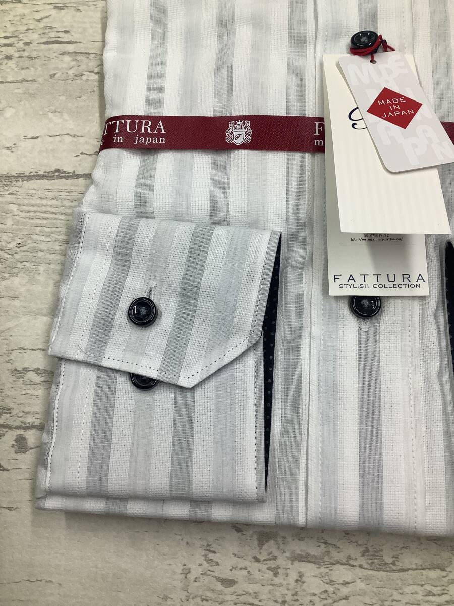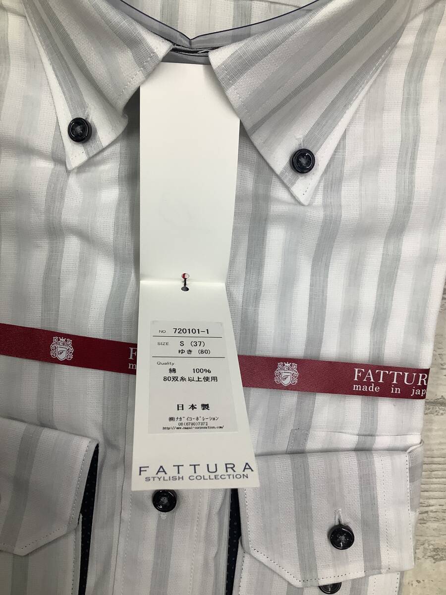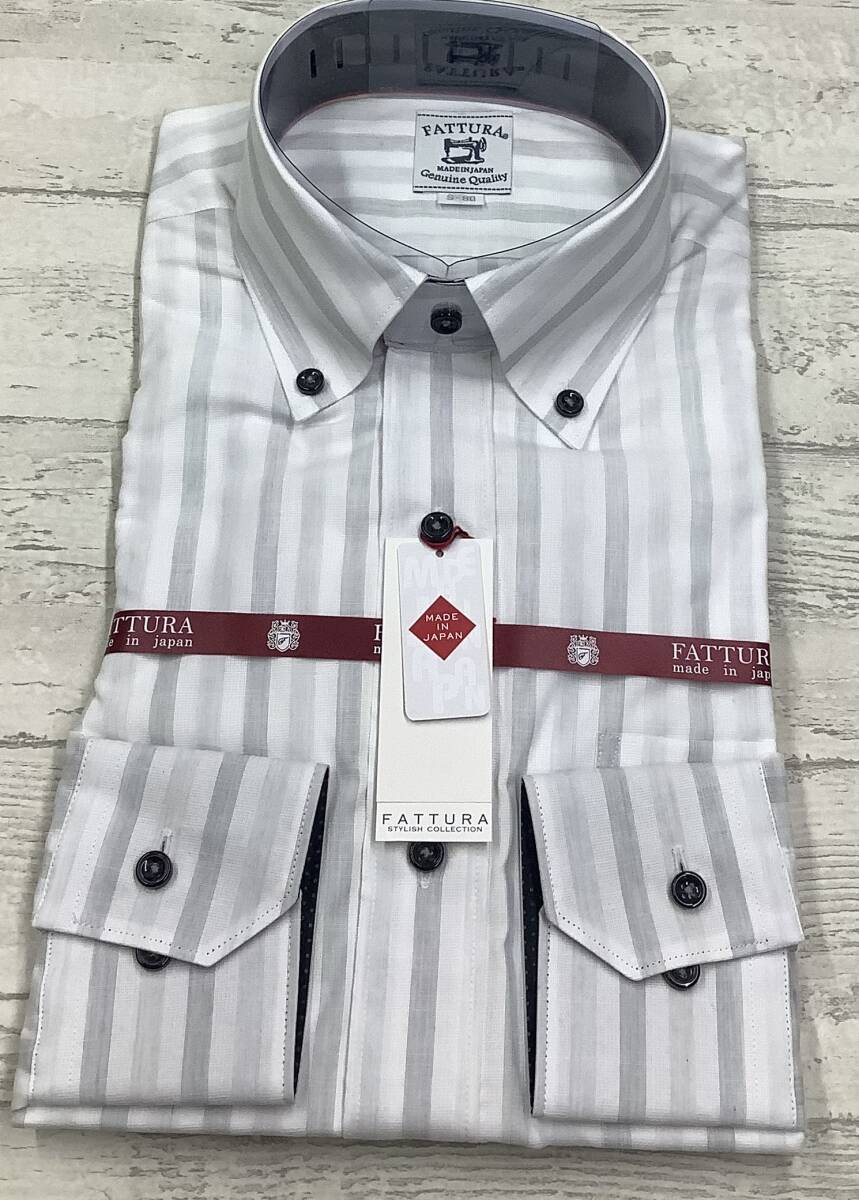 新品未使用  ★ 37-82 Sサイズ 綿100% ★ボタンダウンドレスシャツ ライトグレー系 おしゃれなストライプ★