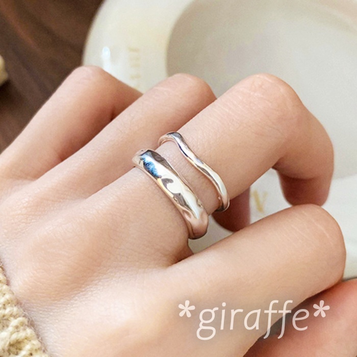 A483 匿名配送 指輪 レディース リング メンズ 二連 s925 シルバー フリーサイズ 調整可能 ダブルレイヤー シンプル おしゃれ