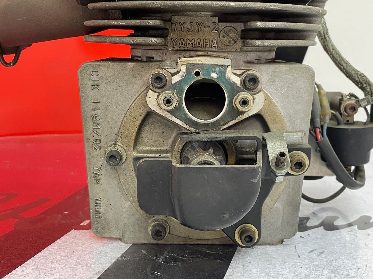 エンジン始動はしていませんのでオーバーホールベースでお考えください。クランクシャフトは圧縮有りで回るので焼き付などはないようです。当時のROTAXエンジンのパーツが流用できます。現在のカートワークスヒグチの樋口さんがヤマハワークス時代に開発したエンジンです。