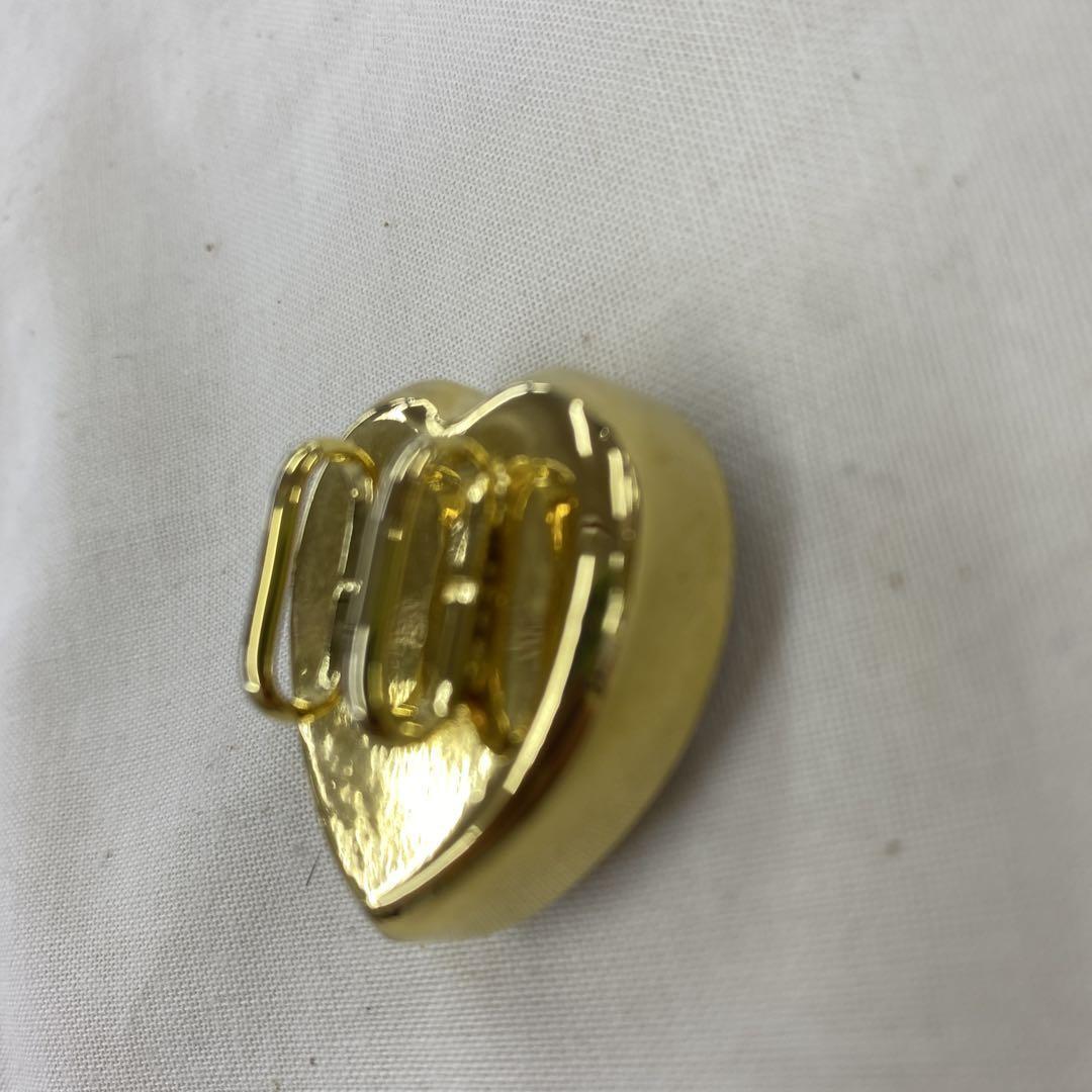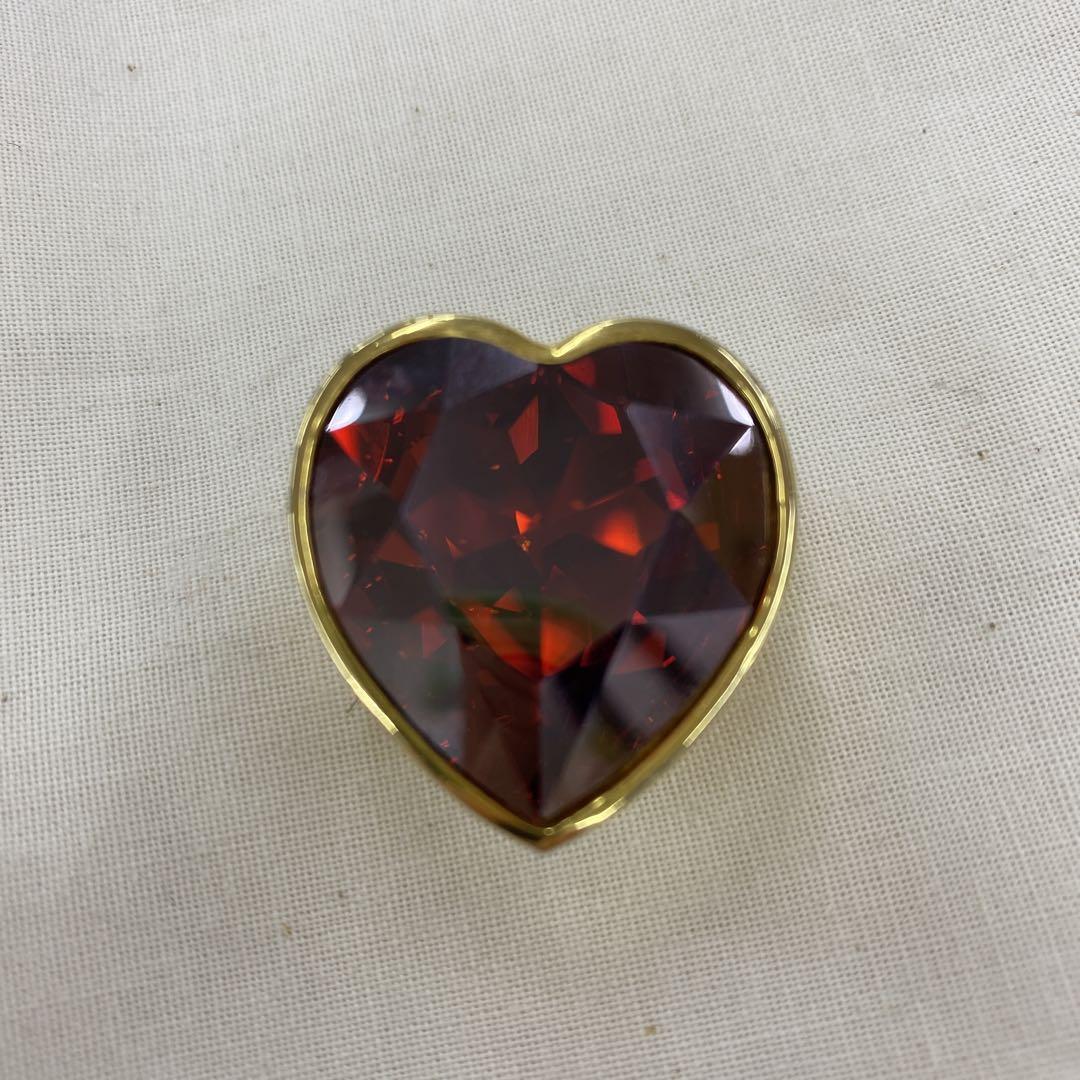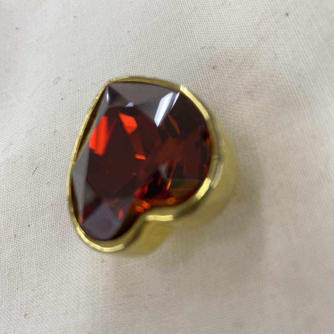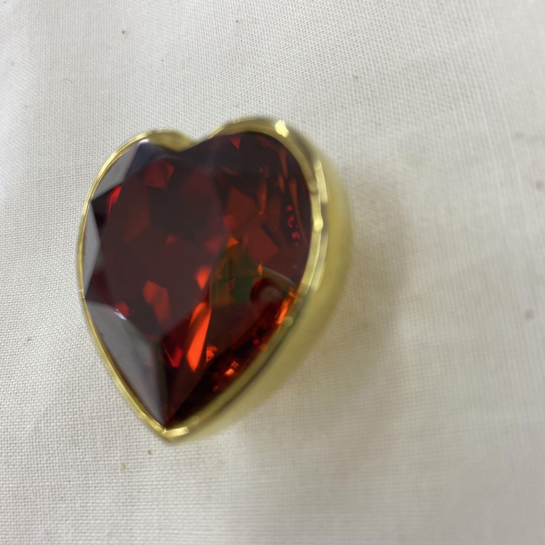 赤色のハート型クリスタルの帯留め、金色フレーム付き。