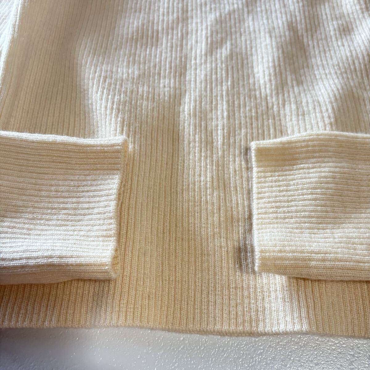 中古品でございます。襟ぐりの後ろ部分に補修跡があります。その他目立つ汚れや傷は見当たりません(*^^*)